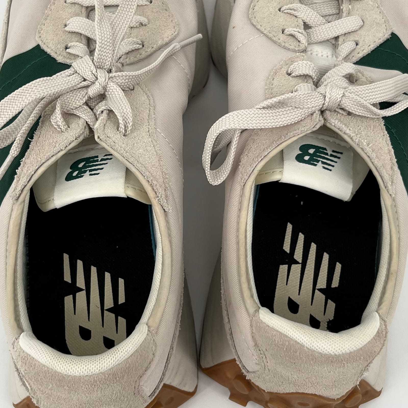 These New Balance sneakers deliver everyday comfort with practical style. Made in Vietnam, they pair well with casual jeans or joggers for Fall, Spring, Summer, or Winter wear. Expect a versatile, easygoing knit-style feel with durable padding for all-day wear. Slight stains and scuffs are present, but the shoes remain ready for daily miles and weekend shows. The beige body with green accents keeps your look low-key and adaptable, making them a solid choice for everyday footwear. Features: - Made in Vietnam - Regular US size 11 - Beige with green accents - Suitable for all-season wear - Easy-care, versatile sneaker style - Flaws: Few stains and scuffs as seen in photos - Inventory: 1139427 A steady, dependable choice that won’t slow you down.