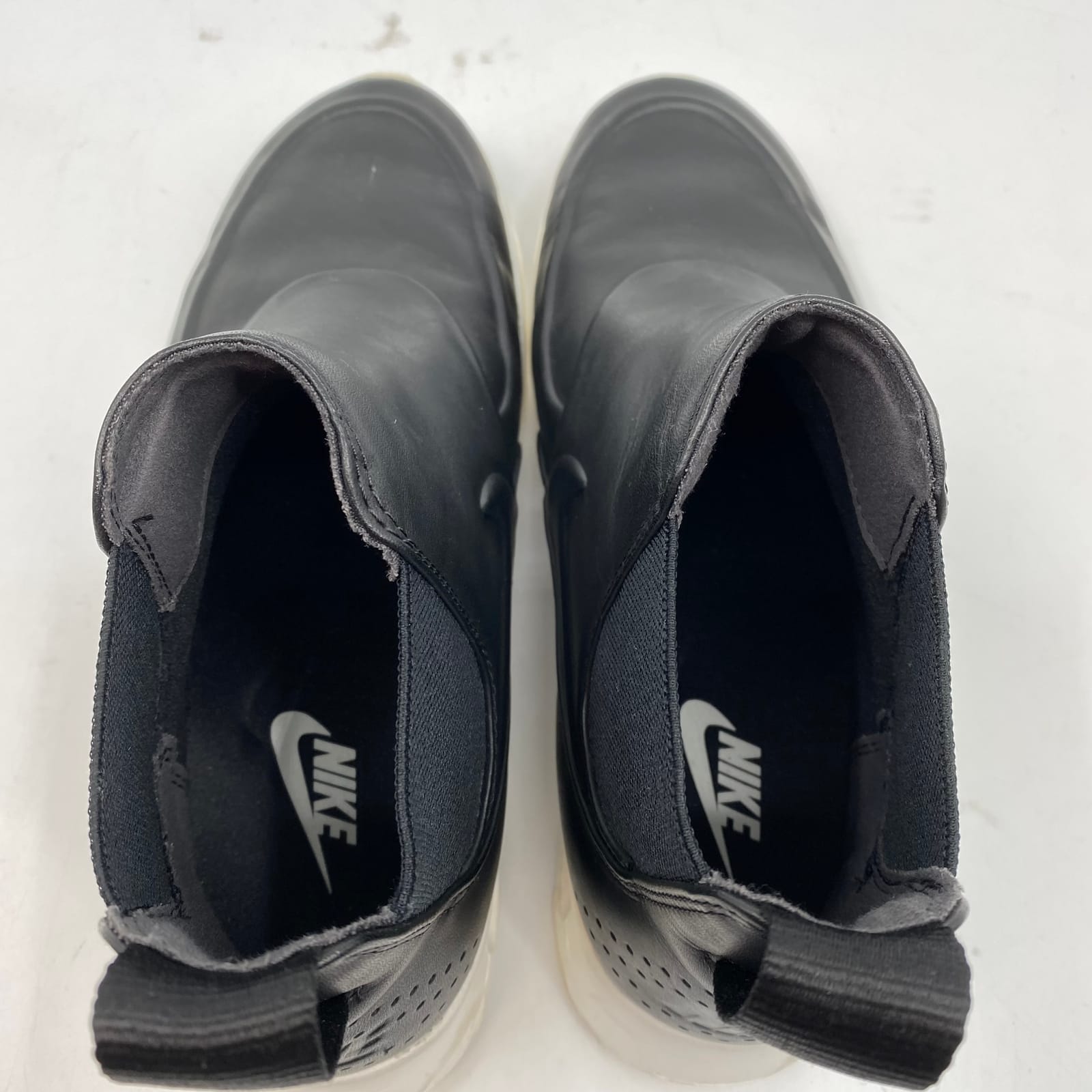 These Nike Air Max Thea sneakers blend everyday comfort with sleek, casual style. Made in Vietnam from durable textile, they pair easily with jeans, joggers, or casual dresses for year-round wear. The solid black upper with contrast white details keeps things versatile, while the Air Max cushioning adds lightweight support for all-day comfort. Features: - Textile upper for lightweight flexibility - Air Max cushioning for responsive comfort - Solid black with white accents for versatile styling - Regular US size 7 for Women - In-store availability with durable construction - Flaws: Dirt around soles, as seen in photos - Inventory: 1137741 A limited find that won’t stay on the shelf long.