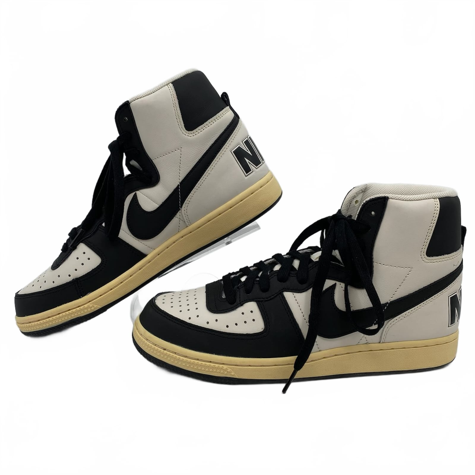 Step into versatile style with the Nike Terminator High sneakers. Built with durable leather in a black and cream palette, these kicks add a classic, street-ready vibe to any outfit. The high-cut silhouette provides ankle support, while the solid profile pairs easily with jeans, joggers, or casual chinos. Ready for year‑round wear, from chilly mornings to warm evenings, these sneakers mix comfort and timeless design in one go. Features: - Leather upper for durable wear - High-cut design for ankle support - Solid black‑cream colorway for easy pairing - Season-ready across winter, spring, summer, fall - Regular fit in men’s US size 8.5 - Inventory: 1140304 This classic Nike Terminator High is a standout addition you’ll reach for again and again.