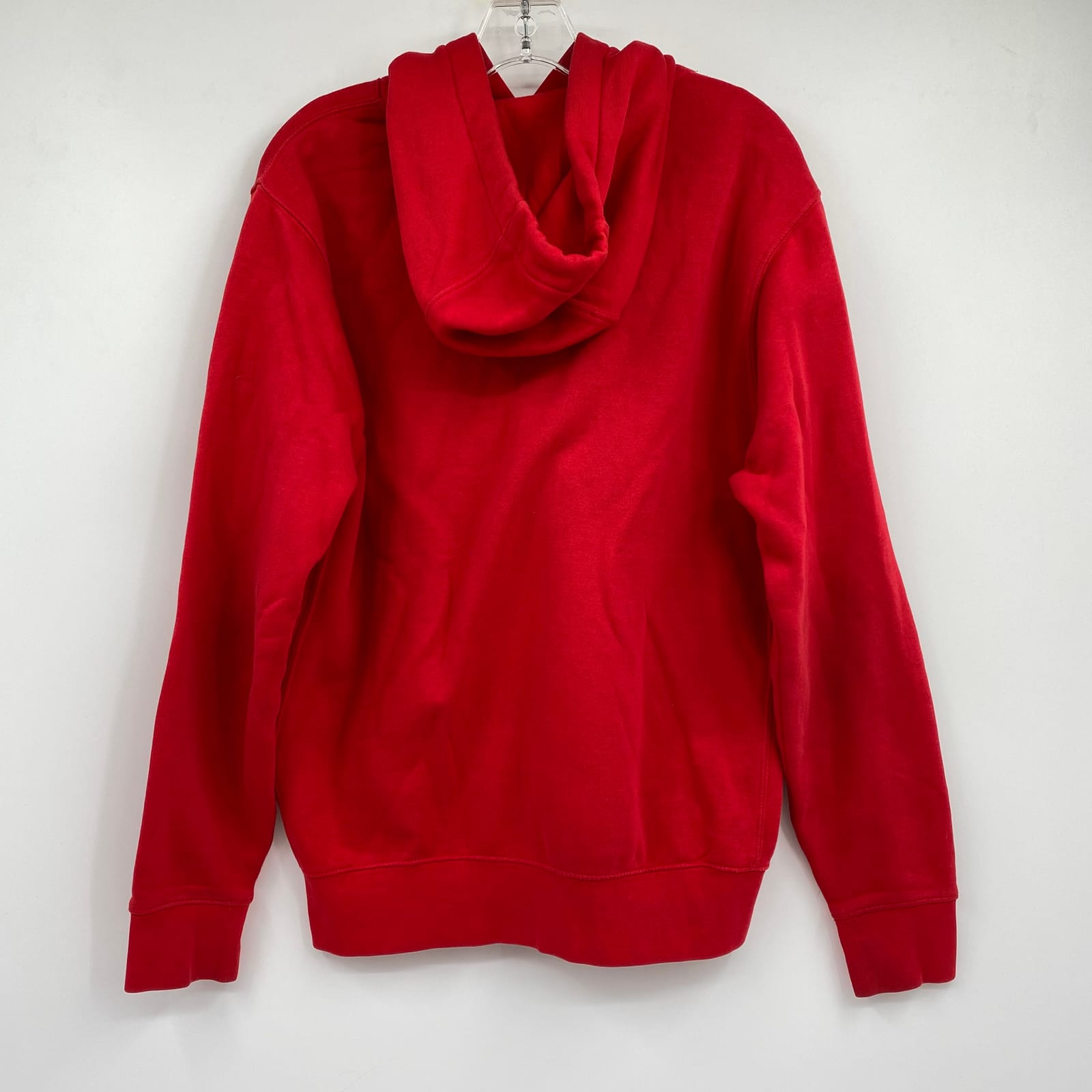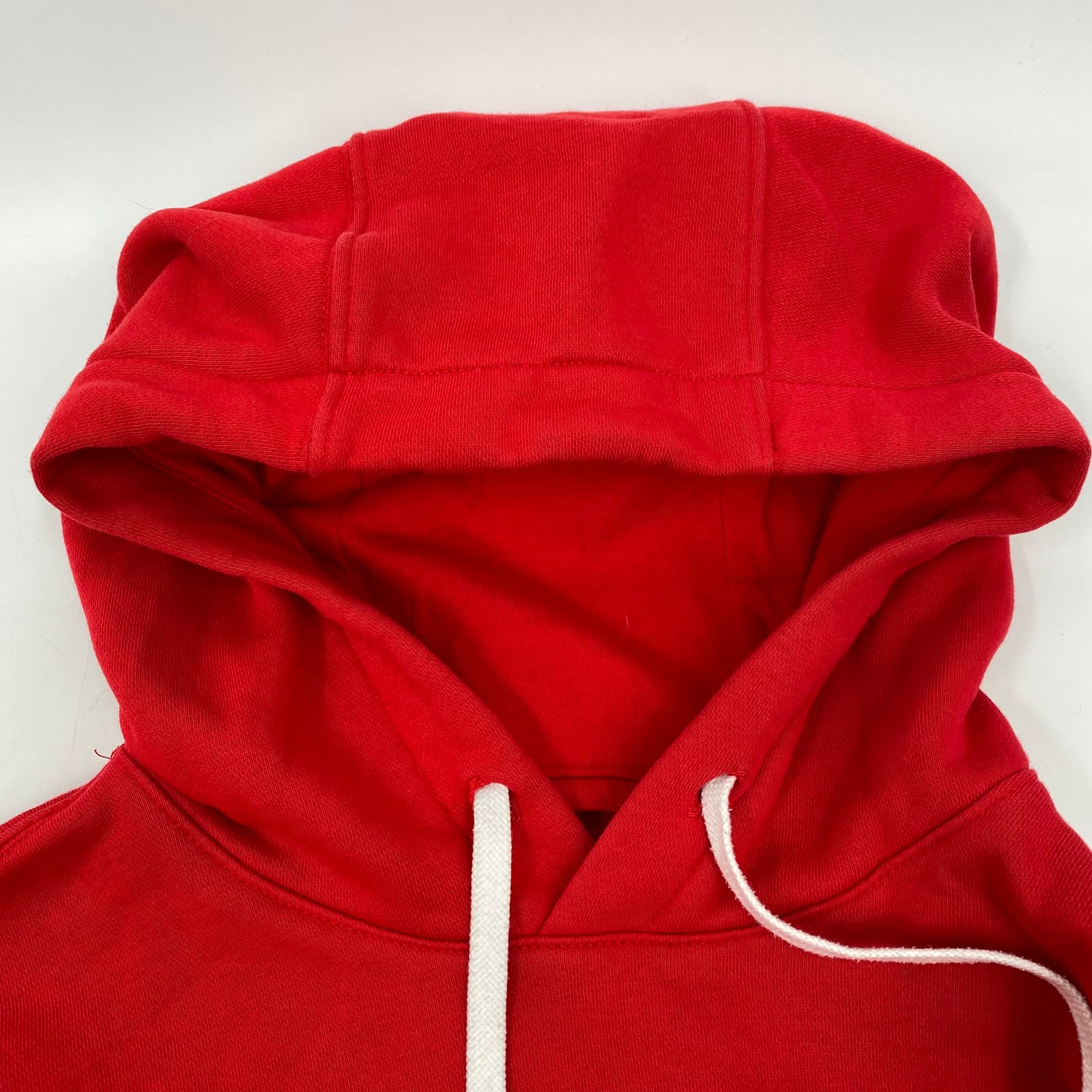 Elevate your casual style with this Nike red and white hoodie. Made from a blend of cotton and polyester, it offers a soft feel that keeps you cozy across all seasons. Whether you're heading to the gym or lounging at home, this versatile piece pairs perfectly with joggers or jeans, making it an essential in your wardrobe. Features: - Crafted from a comfortable cotton-polyester blend - Long sleeve design for added warmth - Classic solid pattern for timeless appeal - Ideal for layering in any season - Perfect for both active and relaxed occasions - Approx. Measurements: Length: 26 in - Flaws: Some faint discoloration on shoulders, as pictured. - Inventory: 1124323 A limited find that won’t hang around long.