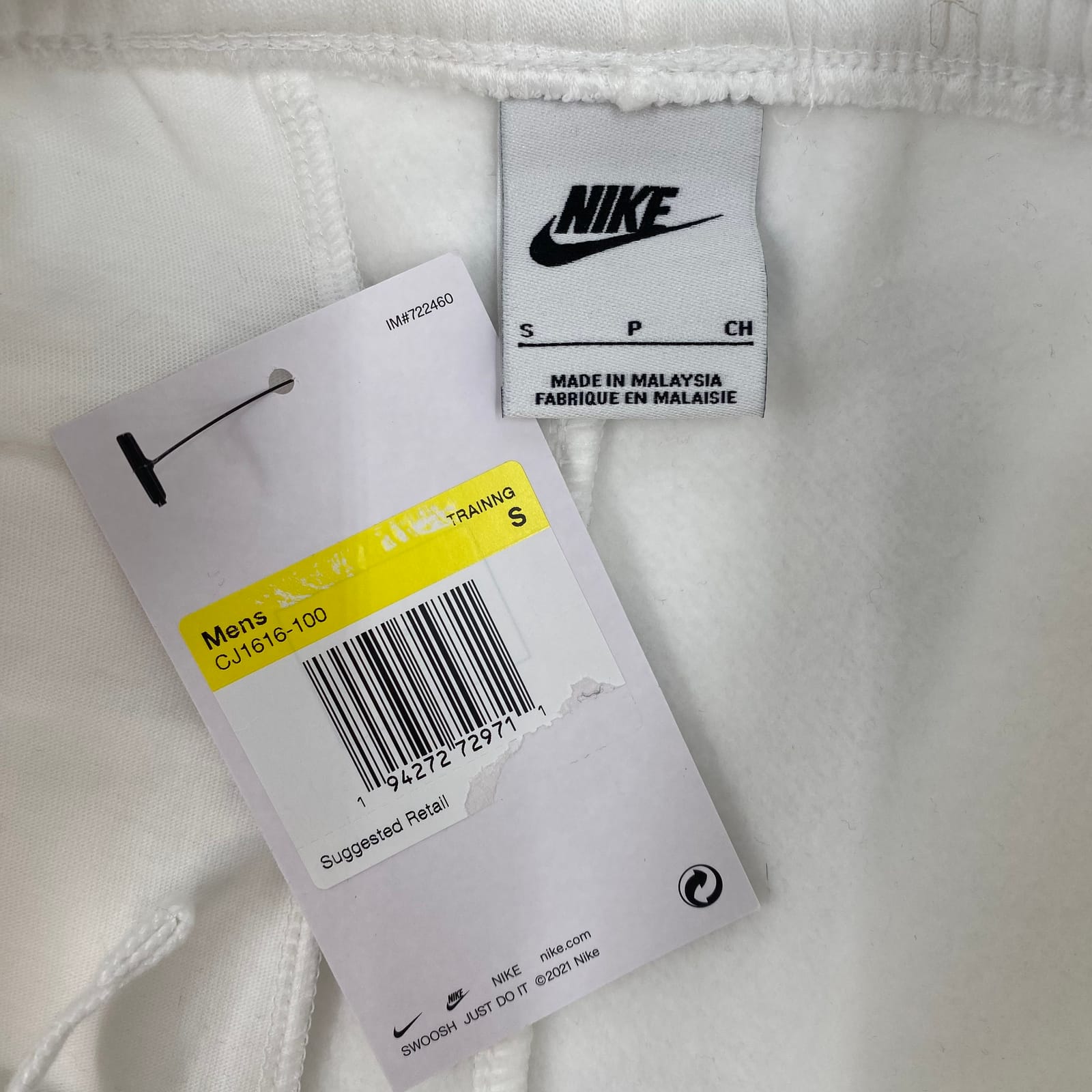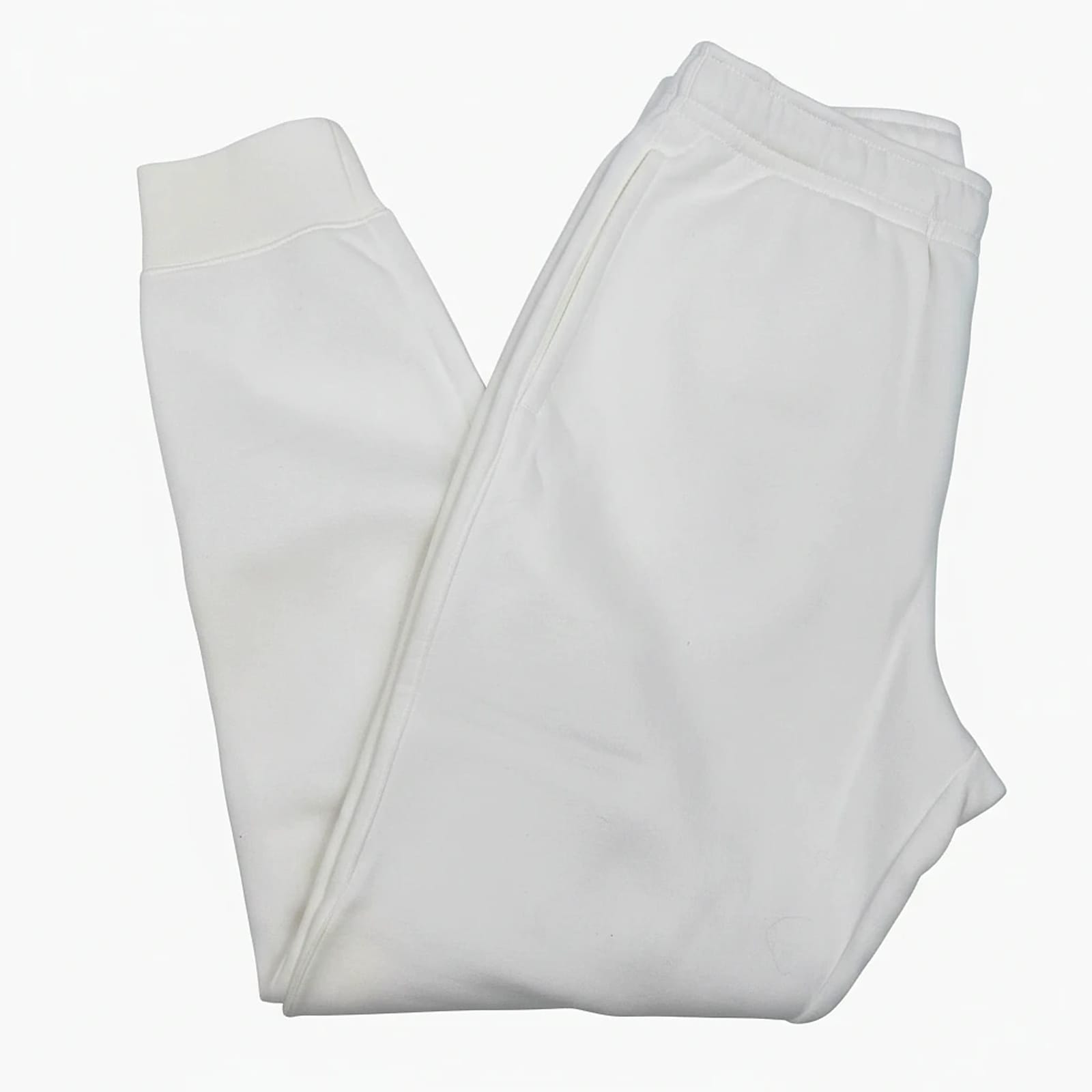 These Nike joggers are your everyday go-to for comfort and easy style. Made with a cotton-poly blend, they feel soft against the skin and move with you through workouts or weekend errands. The classic solid white design pairs with any top, while the jogger silhouette gives a relaxed, tapered fit that keeps its shape wear after wear. Features: - Cotton-poly blend for soft comfort - Regular fit with jogger silhouette - Solid white color pairs with any top - Made in Malaysia for reliable quality - Zippered or elastic waistband options not specified - Approx. Measurements: Inseam Measurement: 27 in, Waist Measurement: 28 in, Rise Measurement: 12 in - Inventory: 1142806 Limited stock in size S—add these classic joggers to your rotation before they’re gone.