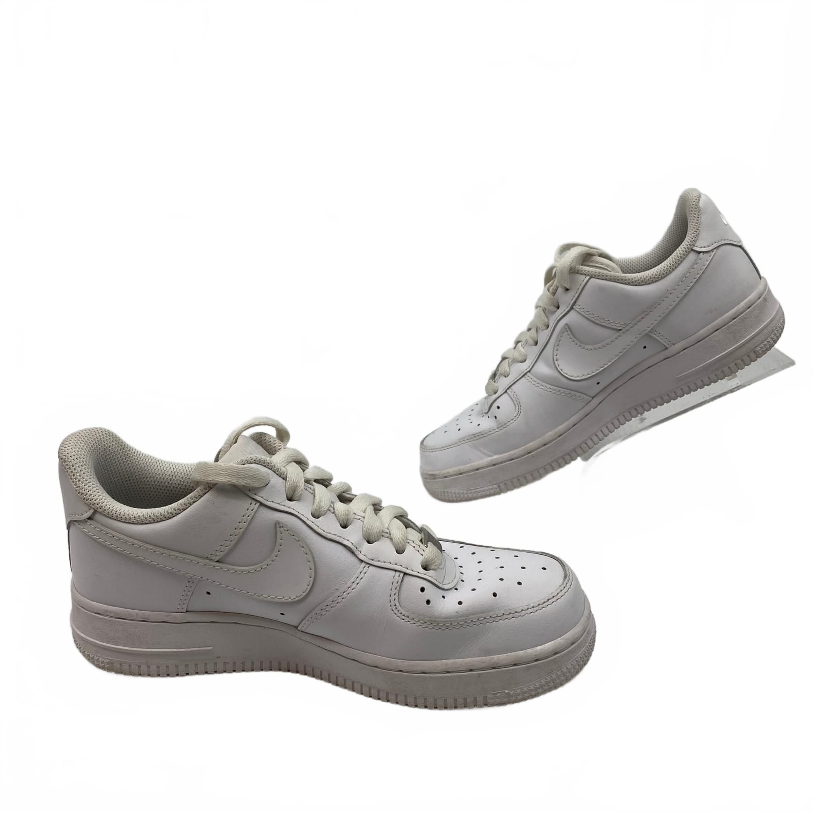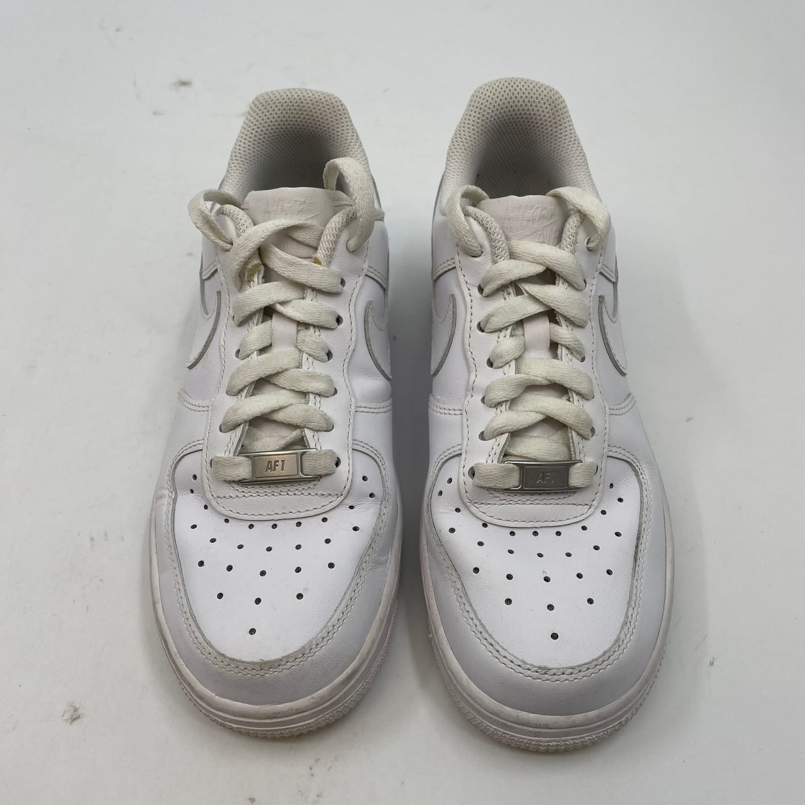 These Nike AF1 sneakers bring classic style to your everyday looks. Made in Vietnam with durable leather, they offer a clean white finish that pairs with jeans, shorts, or leggings across all seasons. Lightweight enough for daily wear, they provide reliable support and timeless appeal you can count on from a trusted brand. Features: - Leather upper for durability and a premium look - Classic AF1 silhouette with versatile white finish - Regular US size 6.5 for a true-to-size fit - All-season wear suitable for any wardrobe - Lightweight and comfortable for daily activities - Inventory: 1139980 A timeless sneaker that won’t stay on the shelf for long.