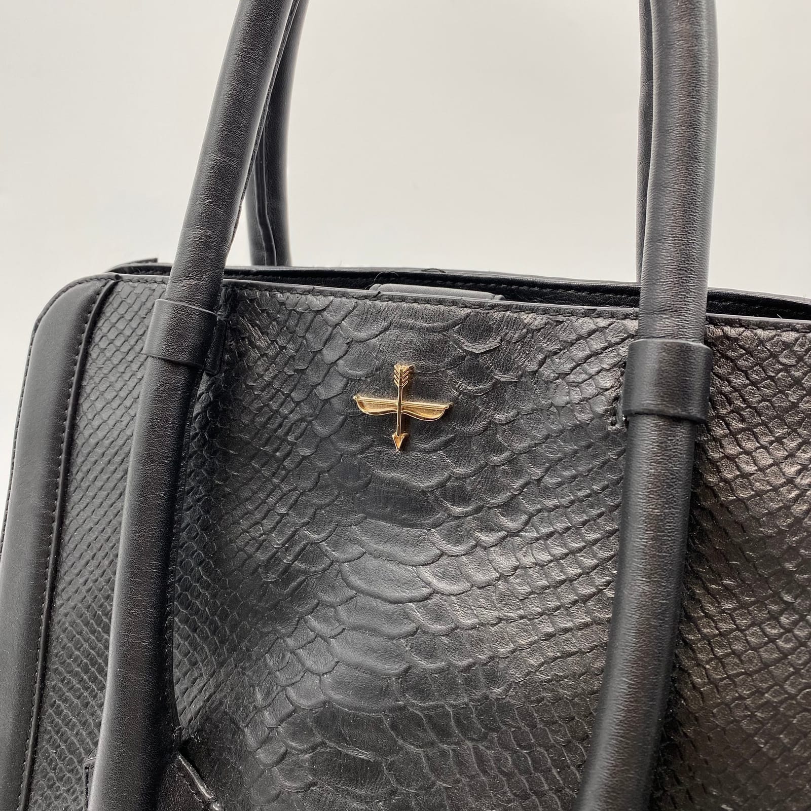 Pour La Victoire Black Croc Embossed Handbag