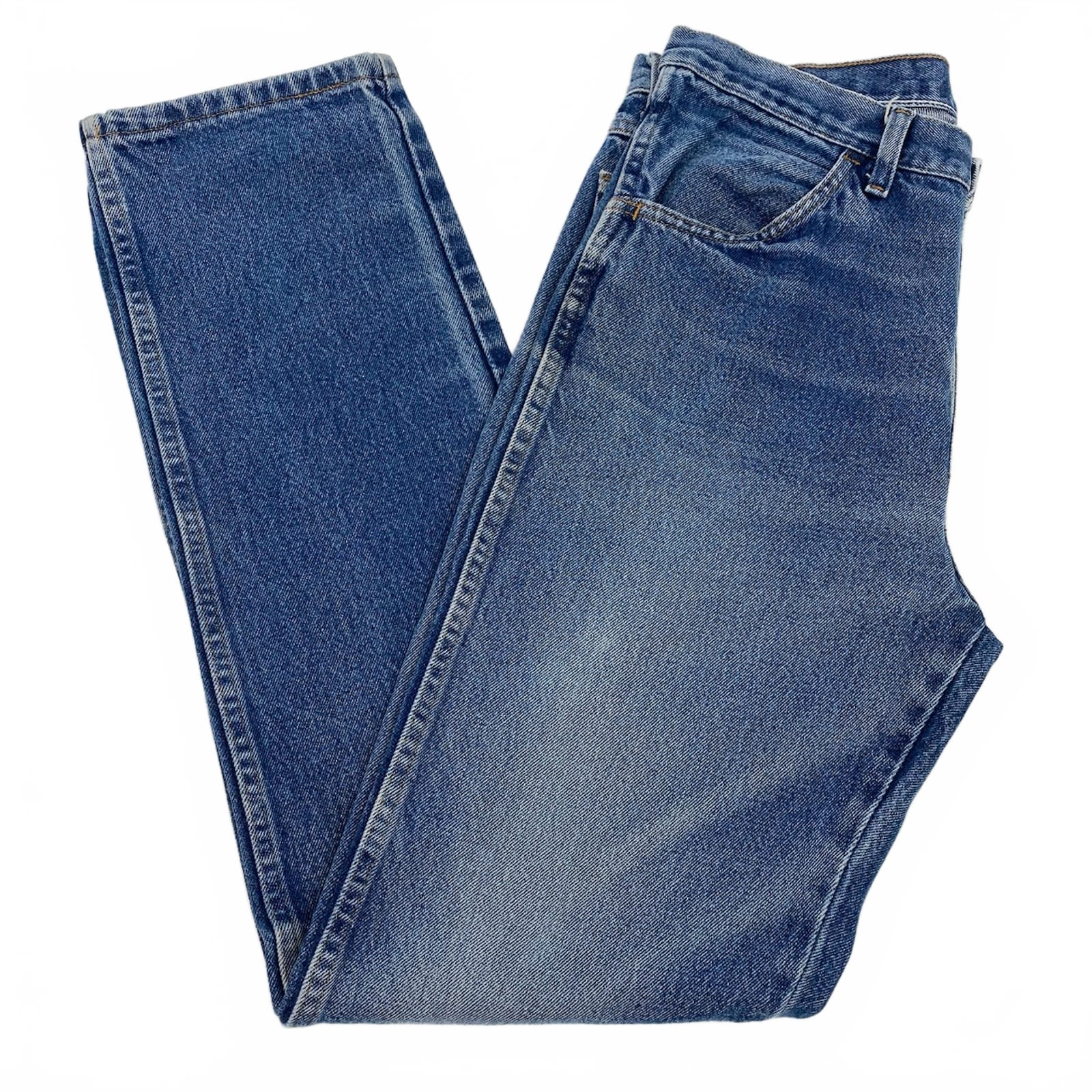 These Rustler medium wash straight jeans deliver practical everyday style. Made from cotton for breathable comfort, they wear well with tees, sweaters, or jackets for any season. Clean, solid blue with a classic straight leg that offers a timeless fit and easy movement. Lightweight wear along the hems shows character without sacrificing versatility—perfect for work, weekends, or casual nights out. Features: - Made from 100% cotton for comfort and durability - Classic straight leg for a timeless silhouette - Medium wash blue finish pairs with everything - Designed for all-season wear with versatile styling - Some light wear on the back leg ends adds character - Approx. Measurements: Inseam Measurement: 33 in, Waist Measurement: 32 in, Rise Measurement: 11.5 in - Flaws: Some light wear on ends of backs on pant legs, as pictured - Inventory: 1123442 A staple you’ll reach for again and again—don’t miss out.