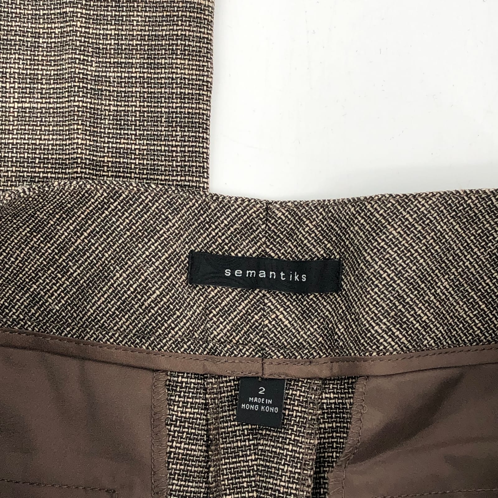 Step into every season with style and elegance wearing Semantiks Brown & Black Wide Leg Pants. Perfect for any occasion, these pants are a fashion-forward choice that blend comfort with chic. Whether you're headed to a business meeting, a casual outing, or a special event, these pants have you covered. Tailored to perfection, they feature a mid-rise waistline that flatters your figure and a wide leg design that adds a dash of sophistication. Made in Hong Kong, these pants exude a classic appeal that never goes out of style. So why wait? Add these versatile pants to your wardrobe today and make every day a fashion show! Features: - Versatile design suitable for any occasion - Flattering mid-rise waistline - Wide leg style adds sophistication - Classic design made in Hong Kong - Perfect for all seasons - Approx. Measurements: Inseam Measurement: 34, Rise Measurement: 10, Waist Measurement: 26 - Inventory: #06128 Don't miss out on owning these timeless Semantiks Brown & Black Wide Leg Pants. They're not just pants, they're a statement. Ideal for any event, any season, and any style - these pants are waiting to be part of your next fashion story. Order now and step into style!