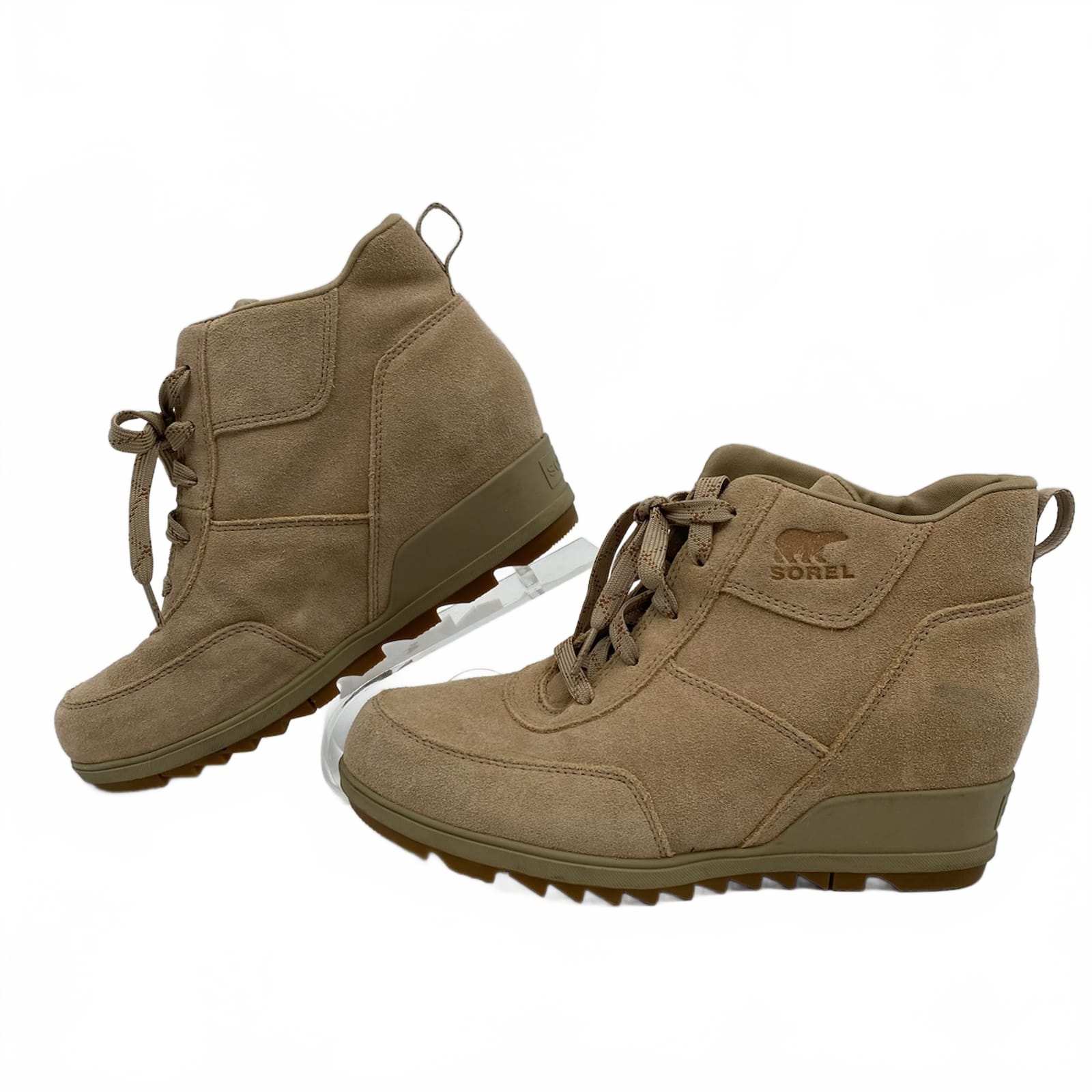 Sorel Tan Suede Lace-Up Wedge Booties | 9