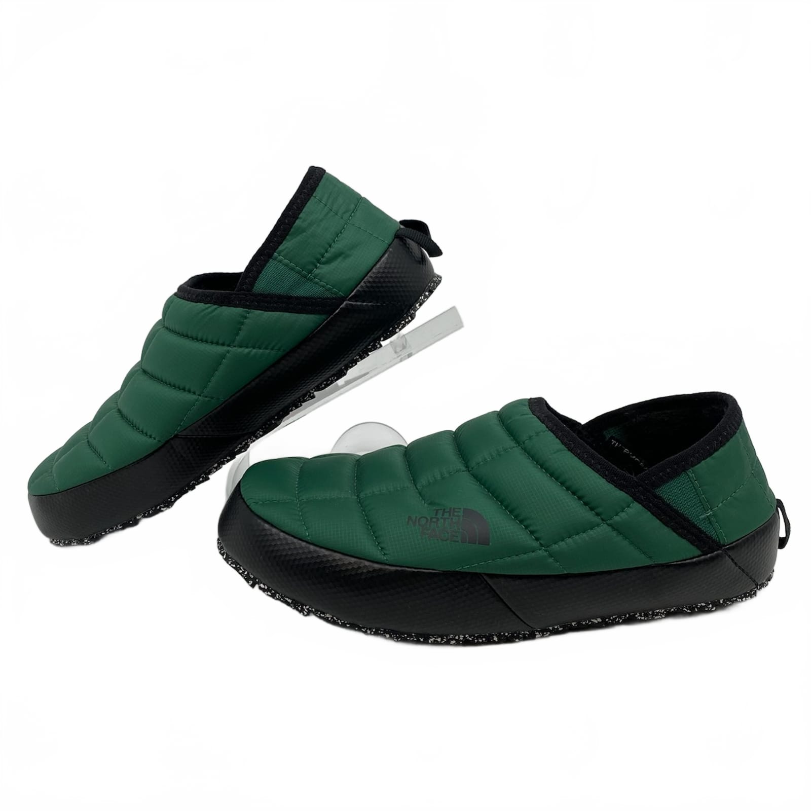 Slip into comfort with these cozy puffer slippers from The North Face. Perfect for chilly mornings or lounging around the house, these slip-ons feature a plush textile upper that keeps your feet snug and warm. Whether you're enjoying a cup of coffee or running quick errands, their lightweight design and classic style make them an essential addition to your footwear collection. Features: - Soft polyester upper for ultimate warmth - Slip-on design for easy wear - Ideal for winter, spring, and fall - Versatile style fits any occasion - Lightweight construction for all-day comfort - Flaws: One small spot on top of right slipper, as pictured. - Inventory: 1128245 This cozy pair won’t last long—make them yours today.