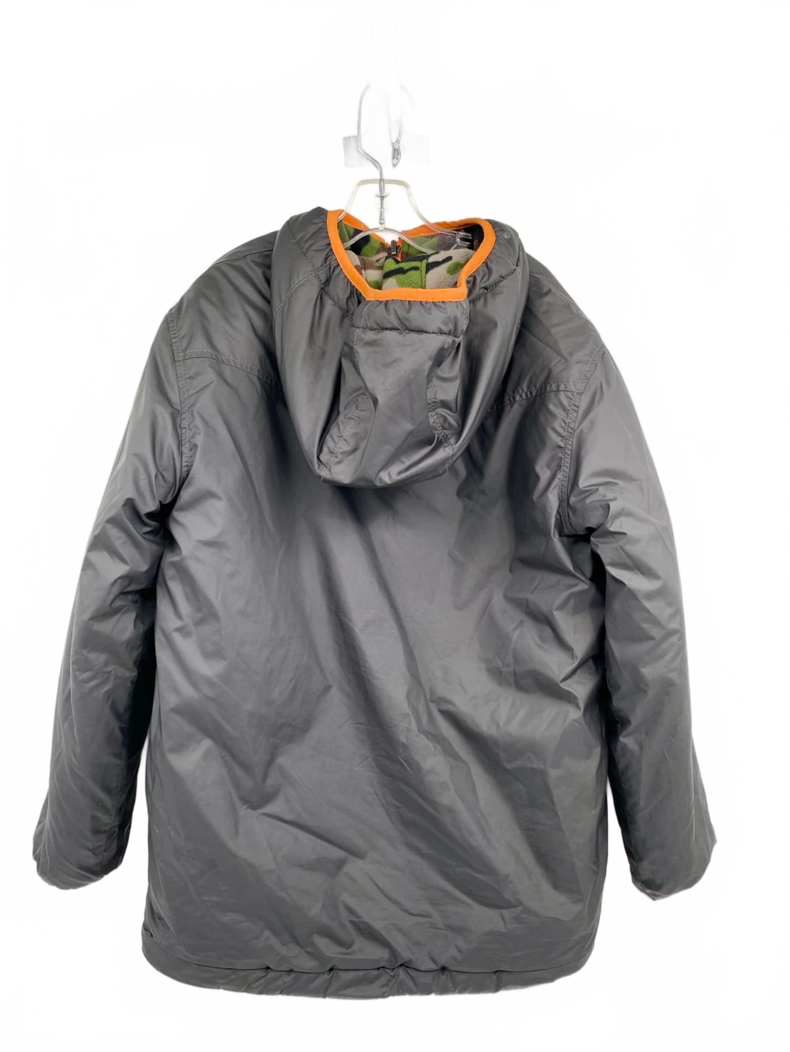 This reversible puffer jacket packs versatility and warmth for everyday adventures. A durable 100% polyester shell with a cozy fill keeps rain or wind at bay while you switch from black to green camo for two distinct looks. It’s lightweight enough for layering in fall and winter, easy to move in, and ready for school, recess, or weekend outings. Features: - Reversible design for two stylish looks - 100% Polyester outer shell for durability - Lightweight warmth ideal for fall and winter - Front-zip closure with secure pockets for essentials - Made in Philippines - Approx. Measurements: Pit To Pit: 18in, Length: 24in - Flaws: Small tears in arms on gray side, as pictured - Inventory: 1129965 Limited stock can vanish quickly—make this reversible favorite yours before it’s gone.