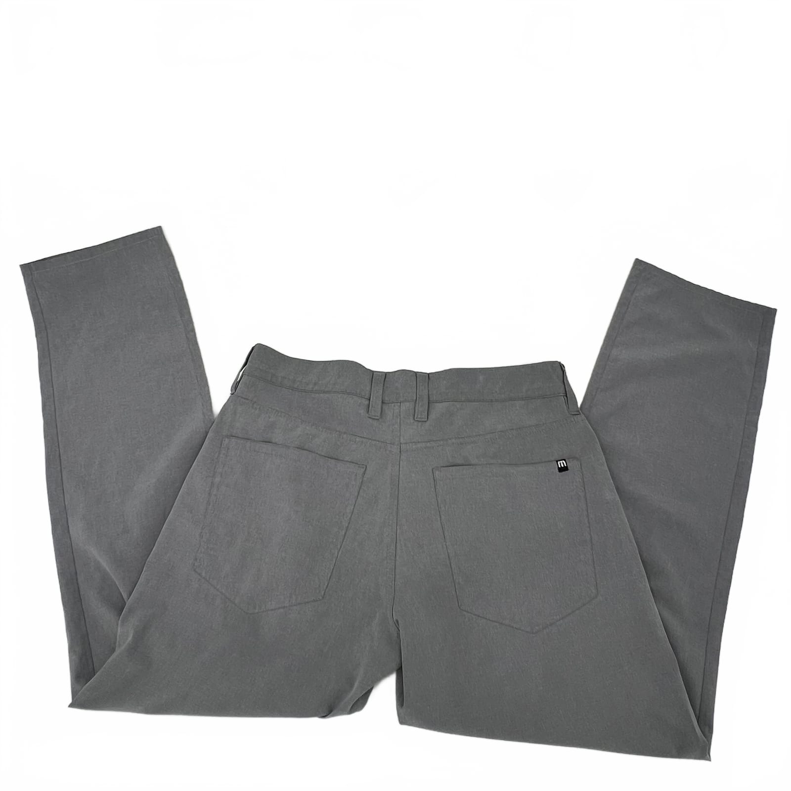 These Travis Mathew dress pants bring a sharp, modern look with a subtle gray grid pattern. Crafted from a comfortable blend of polyester, spandex, and cotton, they offer a tailored fit with just the right stretch for all-day ease. Perfect for work or smart-casual occasions, they pair seamlessly with a crisp shirt or a knit polo. Note: there is loose stitching on the left front pocket, as pictured, which doesn’t affect wearability. Features: - Polyester-Spandex-Ccotton blend for stretch and comfort - Grid pattern adds contemporary detail - Regular fit with versatile 30 waist - Fall, Spring, Summer, and Winter ready - Smooth, crease-resistant finish for polished appearances - Approx. Measurements: Inseam Measurement: 28, Rise Measurement: 9, Waist Measurement: 15.5 - Flaws: Loose stitching on left front pocket, as pictured - Inventory: 1139703 Act fast—the right pair of dress pants elevates your everyday look.