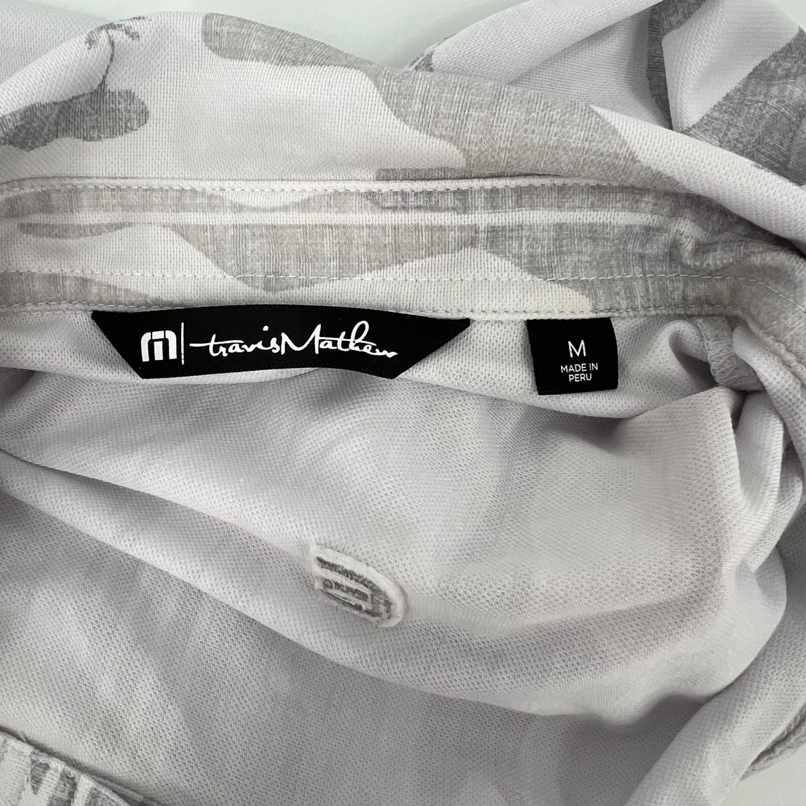 This Travis Mathew polo blends casual cool with durable comfort. Lightweight cotton-poly blend keeps you breathable through every season, while the camouflage pattern adds laid-back, easygoing style. Perfect for you who want sharp apparel that transitions from weekend get-togethers to casual workdays. A clean, crisp polo that’s comfortable all day, with a practical regular fit. Features: - Cotton-poly blend for breathable comfort - Short sleeve polo with camouflage pattern - Infused with durable, easy-care fabric - Regular fit in clean M size for versatile wear - Made in Peru for quality and consistency - Approx. Measurements: Pit To Pit: 20, Length: 28.5 - Inventory: 1139702 Limited stock—step into this versatile polo while it lasts.