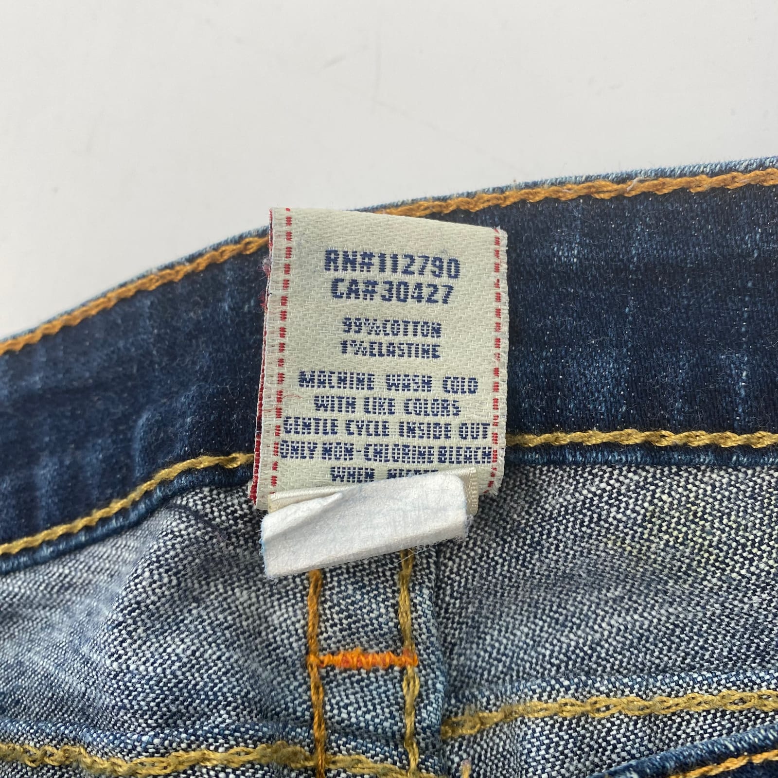 Step out in style with these True Religion Blue Dark Wash Capri Jeans. Perfect for any occasion, these capris offer a chic and comfortable fit that will have you feeling fabulous whether you're headed to a summer barbecue or a cozy winter gathering. Imagine slipping into these ultra-low rise denim jeans, showcasing a classic silhouette that pairs beautifully with your favorite tops. With their solid dark wash, these jeans are not only versatile but also a timeless addition to your wardrobe. Elevate your denim collection with these must-have capris today! Features: - Ultra Low Rise for a trendy look - Classic Capri style perfect for warm weather - Solid dark wash for easy pairing - Made from high-quality cotton denim - Suitable for year-round wear - Approx. Measurements: Inseam Measurement: 21 in, Waist Measurement: 26 in, Rise Measurement: 6 in - Inventory: 1098514 Don't miss out on the chance to make these stylish capris yours! Add them to your cart now and step into effortless elegance!
