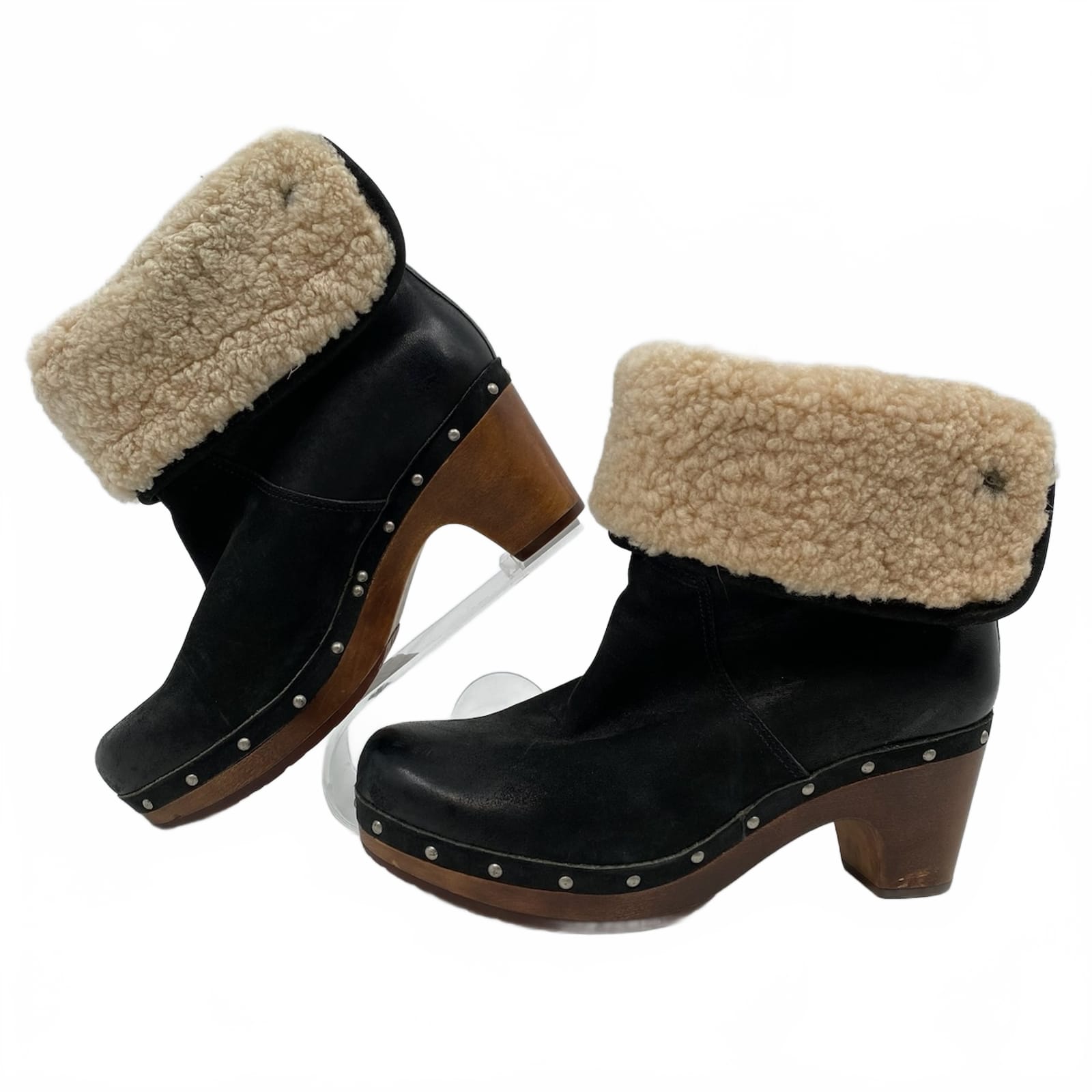 UGG Black Leather Shearling Fold Over Heeled Ankle Booties