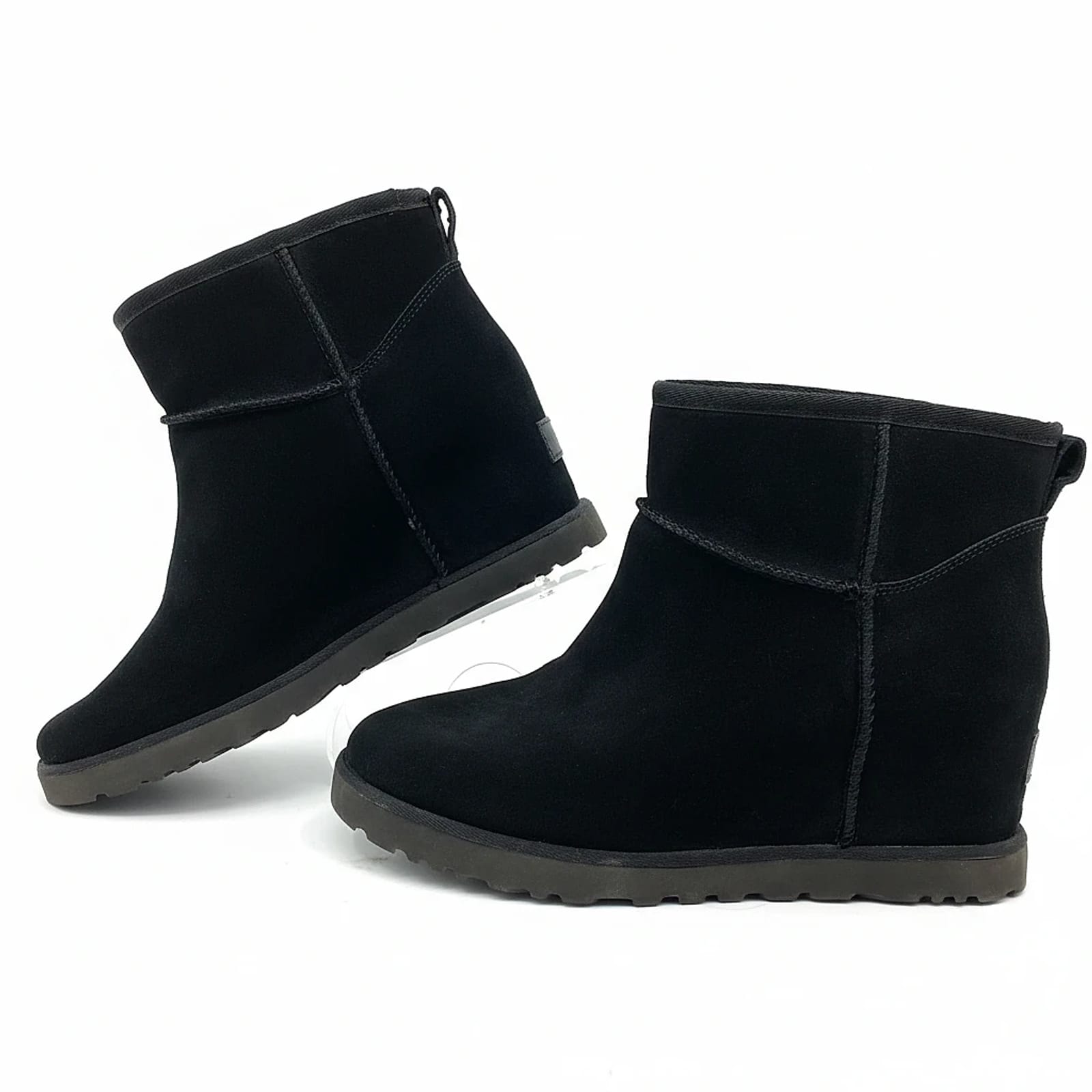 Step into every season with chic, versatile comfort. These suede wedge ankle booties pair with jeans, tights, or dresses for a polished look from fall through winter. A soft wool lining keeps feet warm, while the smooth black suede adds timeless sophistication to any outfit. Features: - Suede upper for a refined silhouette - Wedge heel delivers everyday lift without compromising comfort - Wool lining enhances warmth and coziness - Solid black, versatile style works with dresses, skirts, and denim - Made in Vietnam with durable construction for lasting wear - Inventory: 1142834 Your closet just found a dependable go-to for every occasion.»