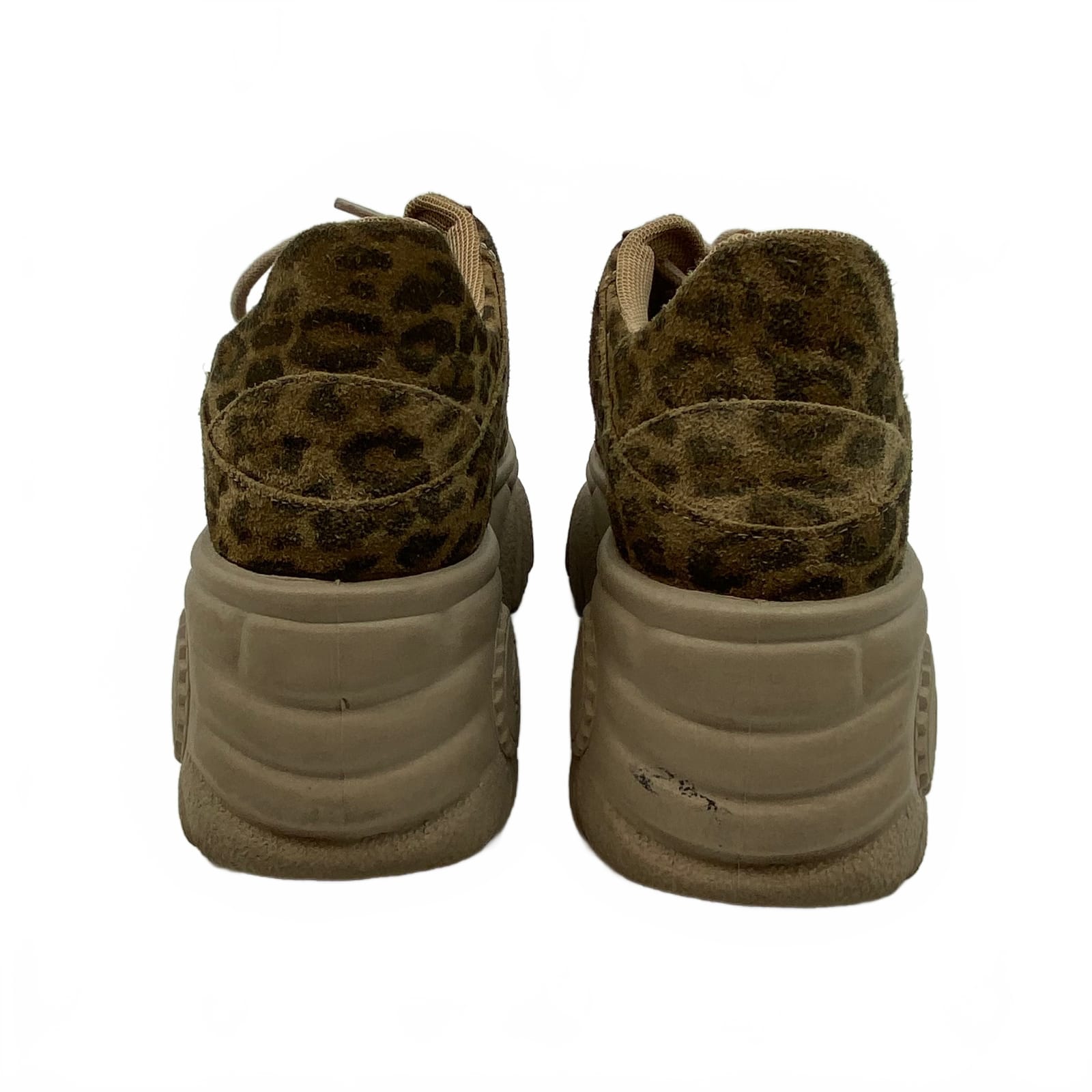 These platform sneakers from Urban Outfitters pair a timeless brown suede with a bold animal print for everyday confidence. Lightweight comfort meets a subtle lift, making them easy to wear from errands to events. Made in Italy with a sturdy platform, they add just the right height while keeping a comfortable stride. Perfect for transitional seasons, they work with jeans, skirts, or dresses and shine with a polished casual look. Features: - Suede upper for a premium feel - Platform sole adds height and comfort - Animal-print detail enhances versatility - Made in Italy for quality construction - Available in regular EU size 39 - Flaws: Small scuff marks - Inventory: 1141199 A limited find that won’t hang around long.