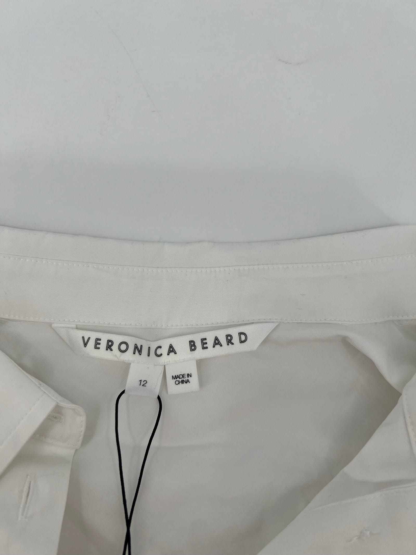 This white Veroy shirt from Veronica Beard is your go-to for polished days and versatile layering. Made from soft cotton, it feels comfortable all day and pairs effortlessly with jeans, trousers, or a blazer. A clean, solid button-up that works from work to weekend—and it’s easy to care for in regular sizes. Features: - 100% cotton for breathability and comfort - Front button closure with classic shirt collar - Solid white with a timeless, versatile silhouette - Easy care, suitable for year-round wear - New with minor defect (inside stain not visible from outside) - Approx. Measurements: Pit To Pit: 20in, Length: 20in - Flaws: Stain on inside but can’t see in the outside as pictured - Inventory: 7460-415 A refined essential that elevates your wardrobe without slowing you down.
