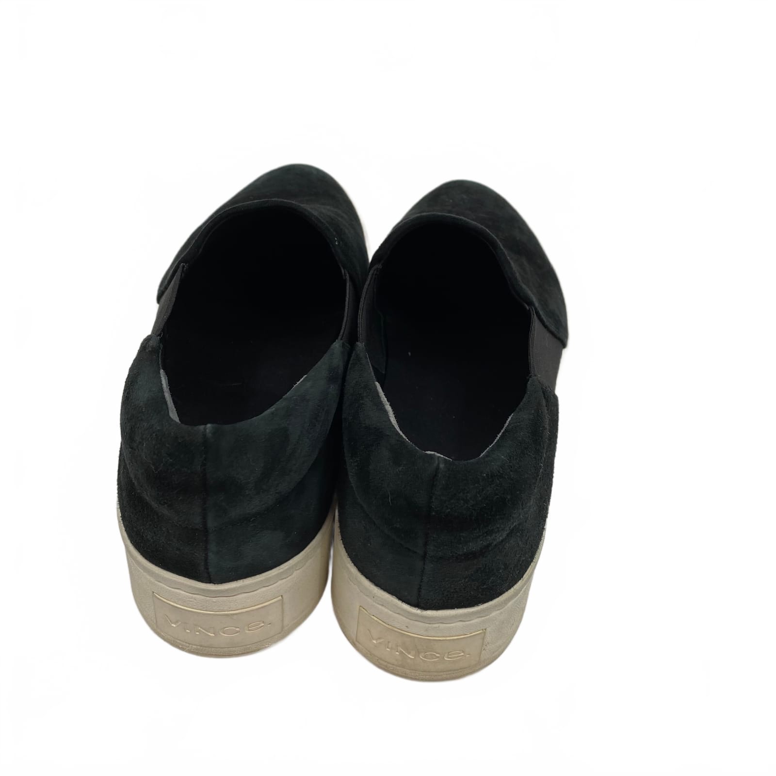 Slip into comfort with these Vince black slip-on sneakers. Crafted in suede for a refined look, they pair easily with jeans, cropped pants, or athleisure. The low-profile silhouette keeps your steps light, while the easy, no-luss design makes them ideal for busy days. Dirt around the outer sole is visible in photos, but the clean, solid black upper remains versatile for fall, winter, spring, and summer wear. Features: - Suede upper for a sleek, versatile look - Slip-on design with clean silhouette - Regular US women’s size 8.5 for easy fit - Low-profile sole enhances everyday comfort - Solid black color pairs with nearly any outfit - Flaws: Dirt around outer sole, as seen in photos - Inventory: 1138043 A classic you’ll reach for again and again—grab it before it’s gone.