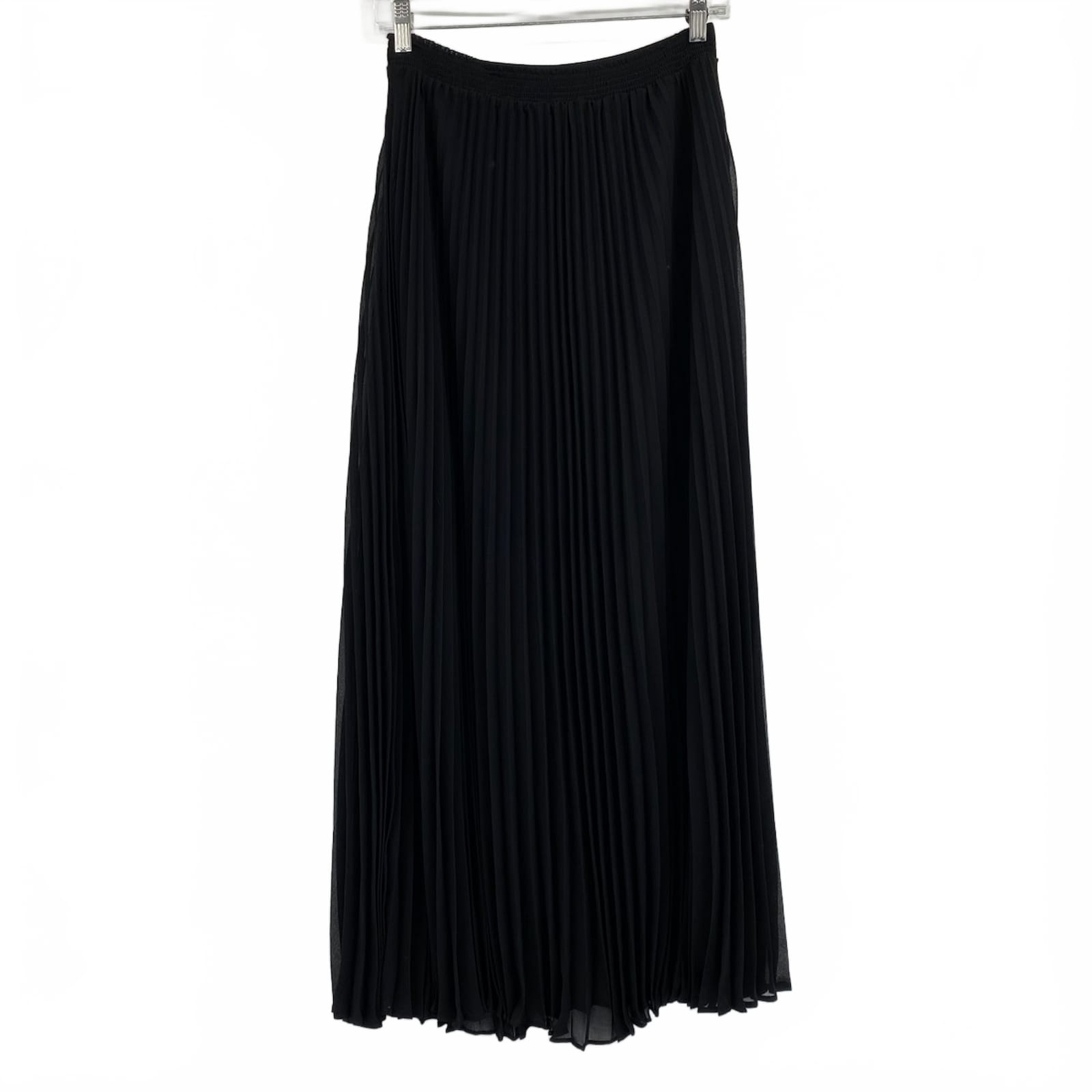 White House Black Market Black Pleated Sheer Overlay Maxi Skirt | XS