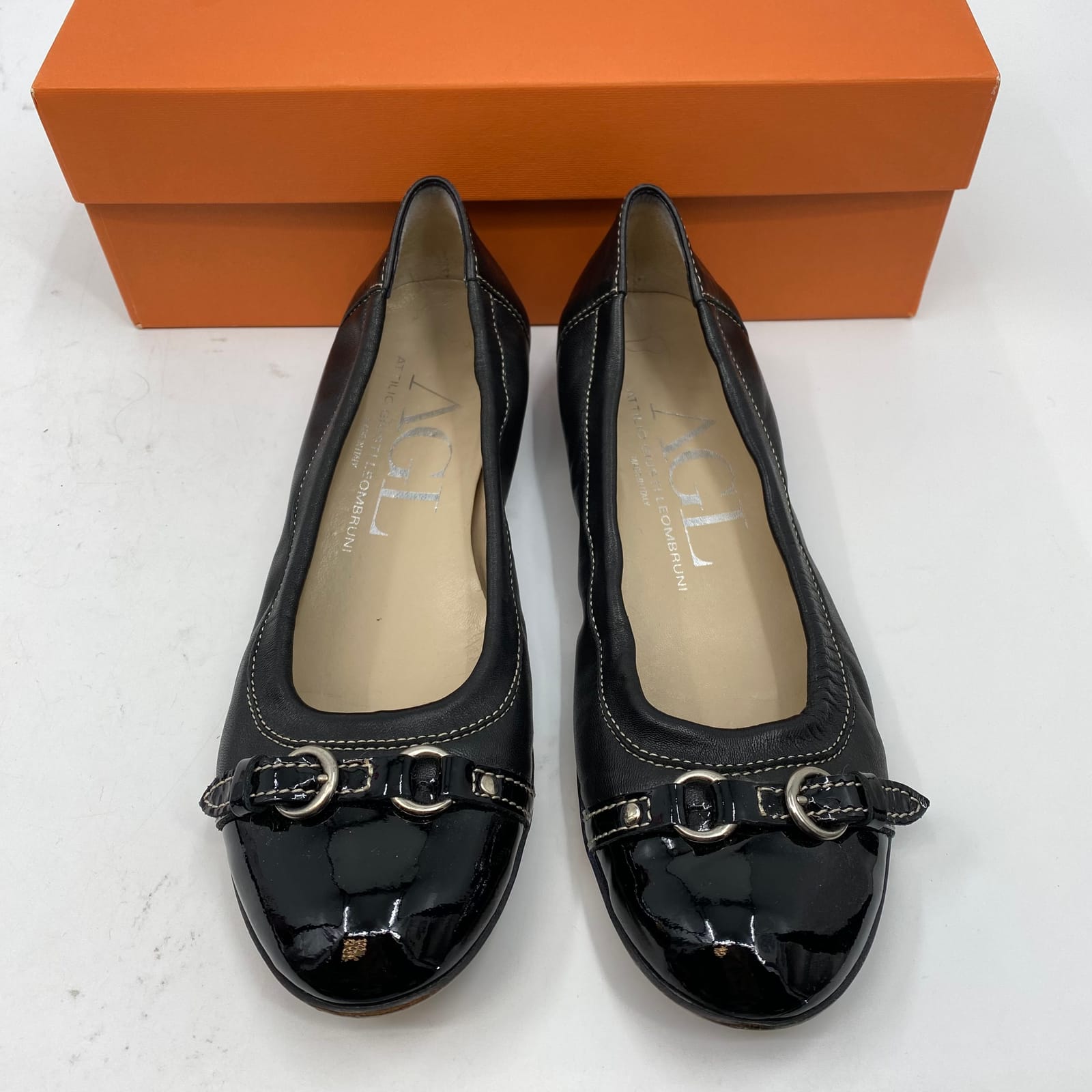Step into classic polish with these Agl flats. Made in Italy from smooth leather and glossy patent accents, they pair effortlessly with dresses, trousers, or casual denim. A timeless buckle detail adds refined interest, while a comfortable regular fit keeps you going all day. Elevate every season—from warm days to cool evenings—with this versatile, everyday flat. Features: - Made in Italy from genuine leather and patent leather - Upper leather for a clean, durable structure - Buckle accent for a refined touch - Regular EU38 / US8 fit for all-day comfort - Versatile flat suitable for work, casual, and dressier looks - Inventory: 1137475 A limited find that won’t stick around long.
