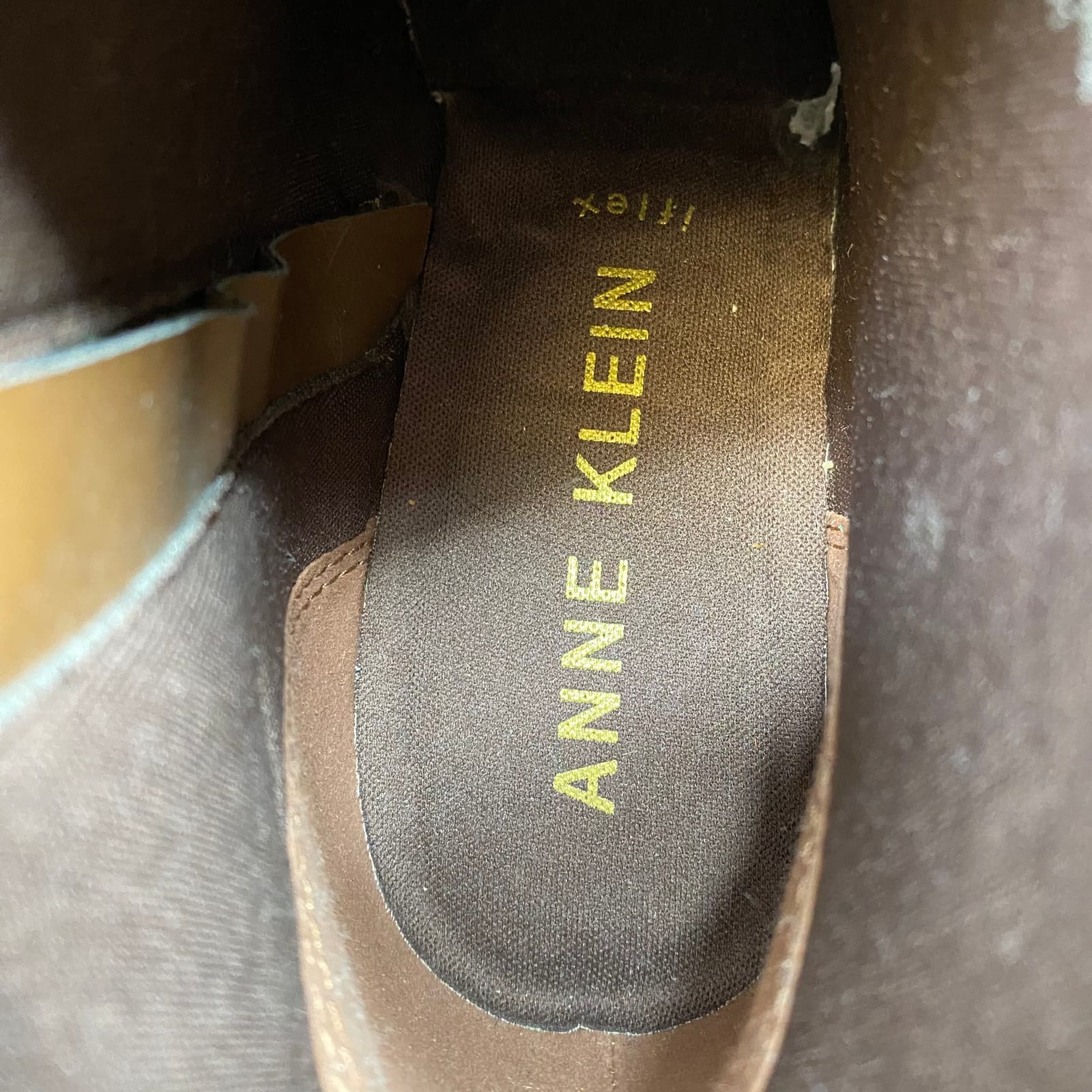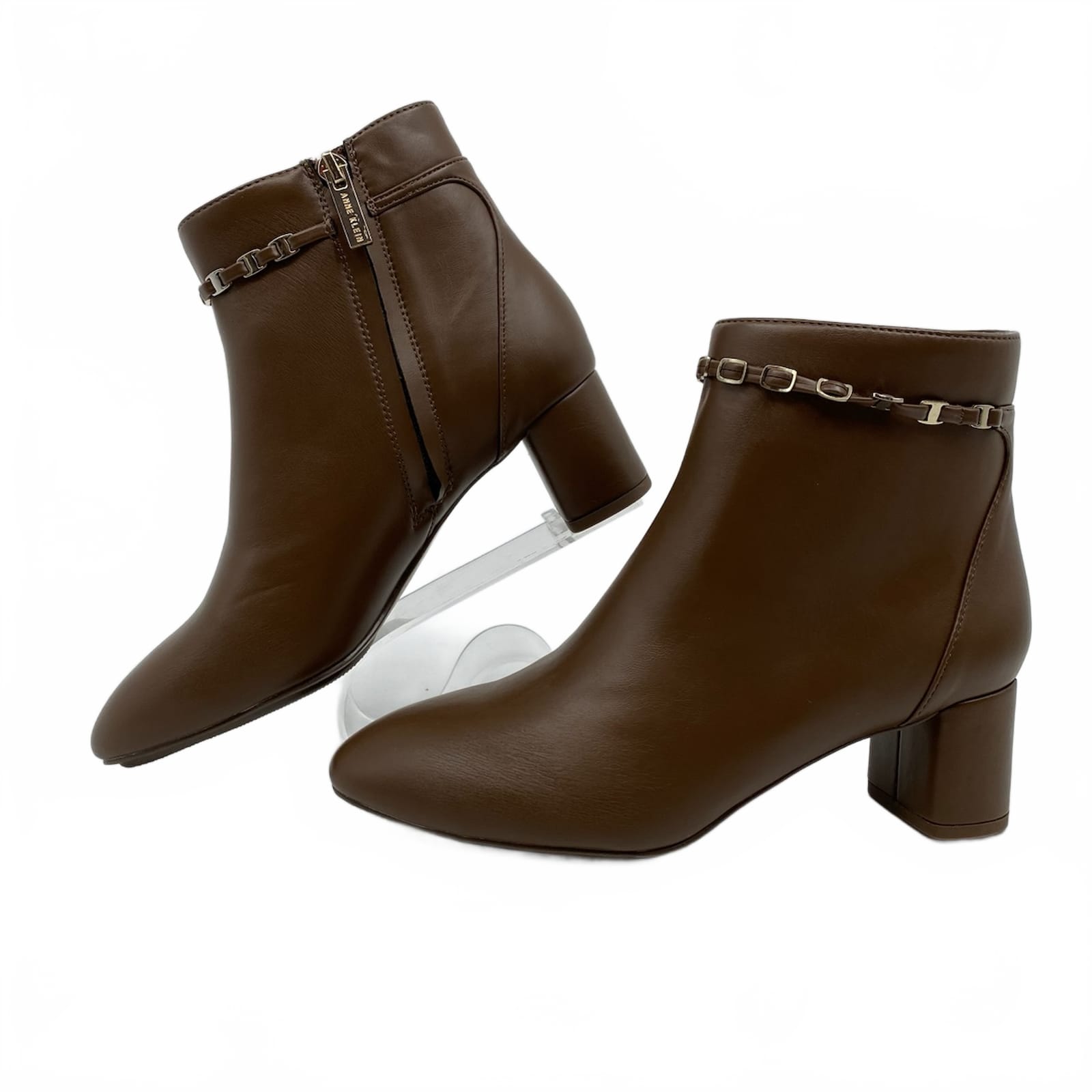 Step up your footwear game with these Anne Klein brown heeled ankle booties. Crafted from soft faux leather, they bring a touch of classic elegance to any outfit. Perfect for transitioning through winter, spring, and fall, these versatile booties complement both casual jeans and chic dresses, making them a must-have in your wardrobe. Features: - Stylish heeled design for a polished look - Made from durable faux leather - Comfortable fit for all-day wear - Classic solid pattern complements any outfit - Ideal for various occasions - Inventory: 1132951 Only one pair left—make them yours before they're gone.