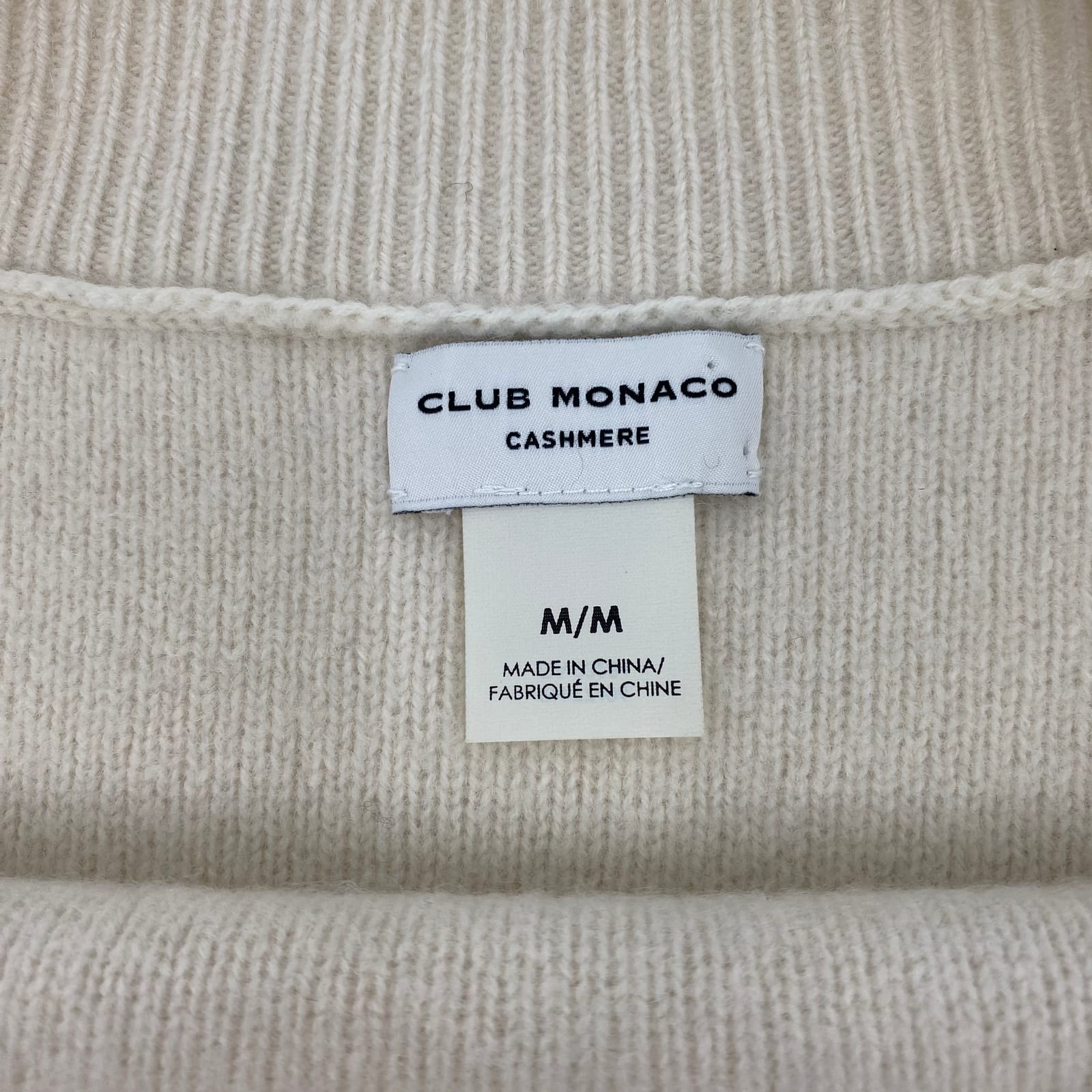 This Club Monaco colorblock cashmere pullover is your go-to for cozy versatility. Soft beige and green panels blend seamlessly with your favorite denim or a sleek skirt, keeping you warm without bulk. A premium cashmere knit makes every wear feel luxurious and comfortable across fall, winter, and spring. Features: - Made from cashmere for luxurious warmth - Colorblock beige and green design - Classic crew neck pullover - Lightweight yet insulating for multiple seasons - Premium knit that drapes softly and fits true to size - Approx. Measurements: Pit To Pit: 21.5 in, Length: 21.5 in - Inventory: 1133311 A limited find that won’t hang around long.