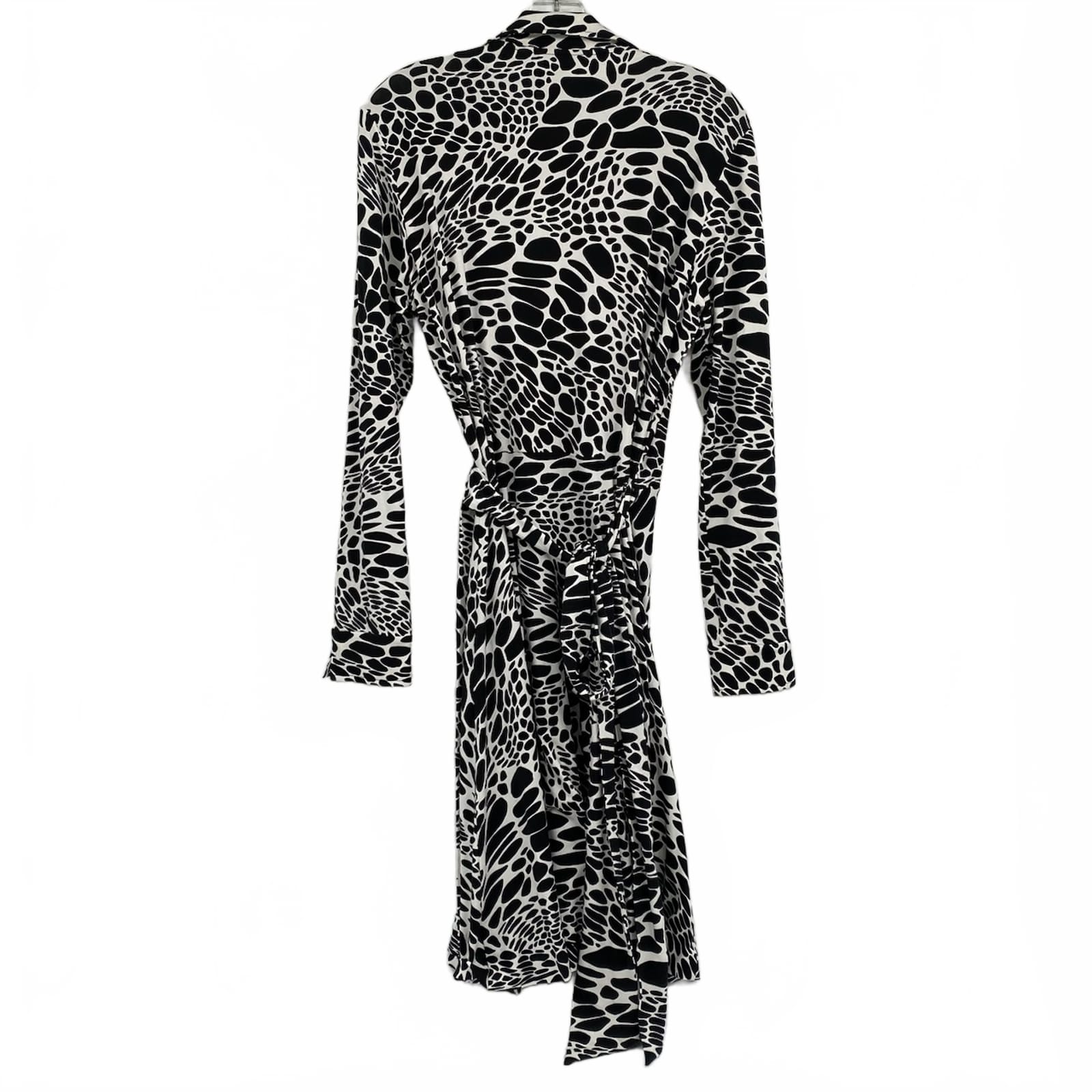 Elevate your wardrobe with this Diane Von Furstenberg midi dress, designed to flatter your silhouette. With its chic wrap style and playful black and white spots, this versatile piece transitions seamlessly from day to night, making it an ideal choice for any occasion. Pair it with heels for a polished look or dress it down with sandals for a relaxed vibe. Features: - Crafted from a comfortable blend of viscose and spandex - Classic wrap design enhances your figure - Midi length perfect for all seasons - Great for casual outings or formal events - Easy to care for and travel-friendly - Approx. Measurements: Pit To Pit: 20.5 in, Length: 40 in - Inventory: 1132697 One of a kind—add this staple to your collection before it’s gone.