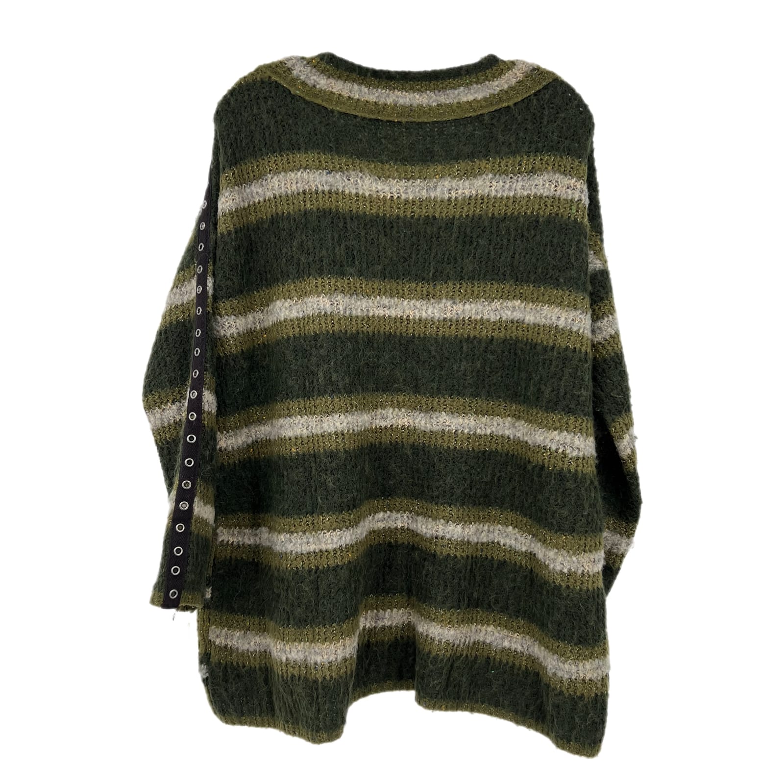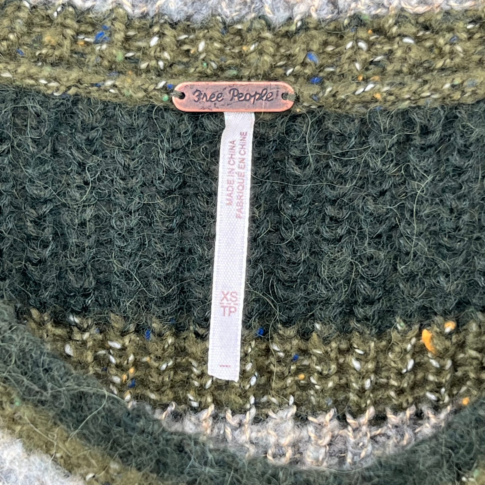Free People Green Striped Acrylic Pullover Sweater | XS