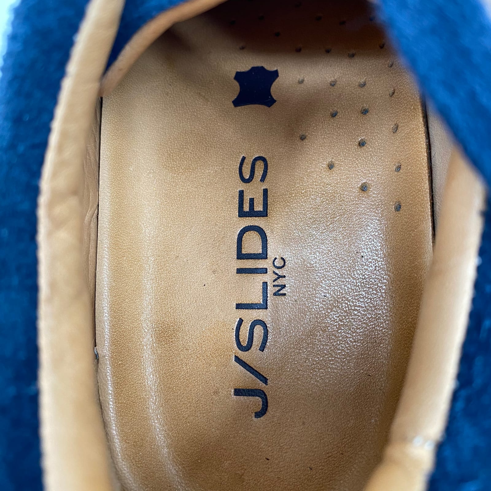 Elevate your everyday look with these J/SLIDES navy blue suede platform sneakers. Designed for comfort and style, these shoes pair effortlessly with any outfit, whether you're heading out for brunch or running errands. The soft suede and faux leather materials ensure a luxurious feel, while the platform adds a touch of height without sacrificing comfort. Features: - Crafted from soft suede and durable faux leather - Classic navy color complements any wardrobe - Platform design for added height and comfort - Versatile for any occasion throughout the year - Lightweight construction makes them perfect for all-day wear - Flaws: Some wear on outer soles, as pictured. - Inventory: 1132493 A limited find that won’t hang around long.