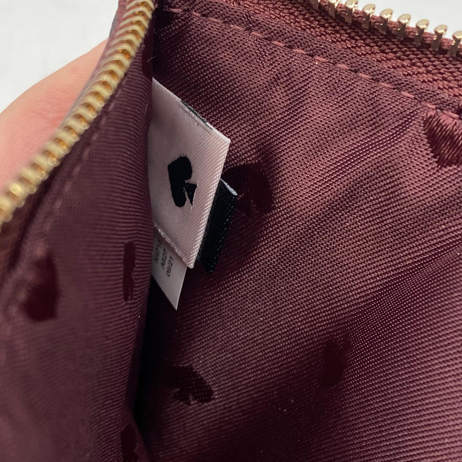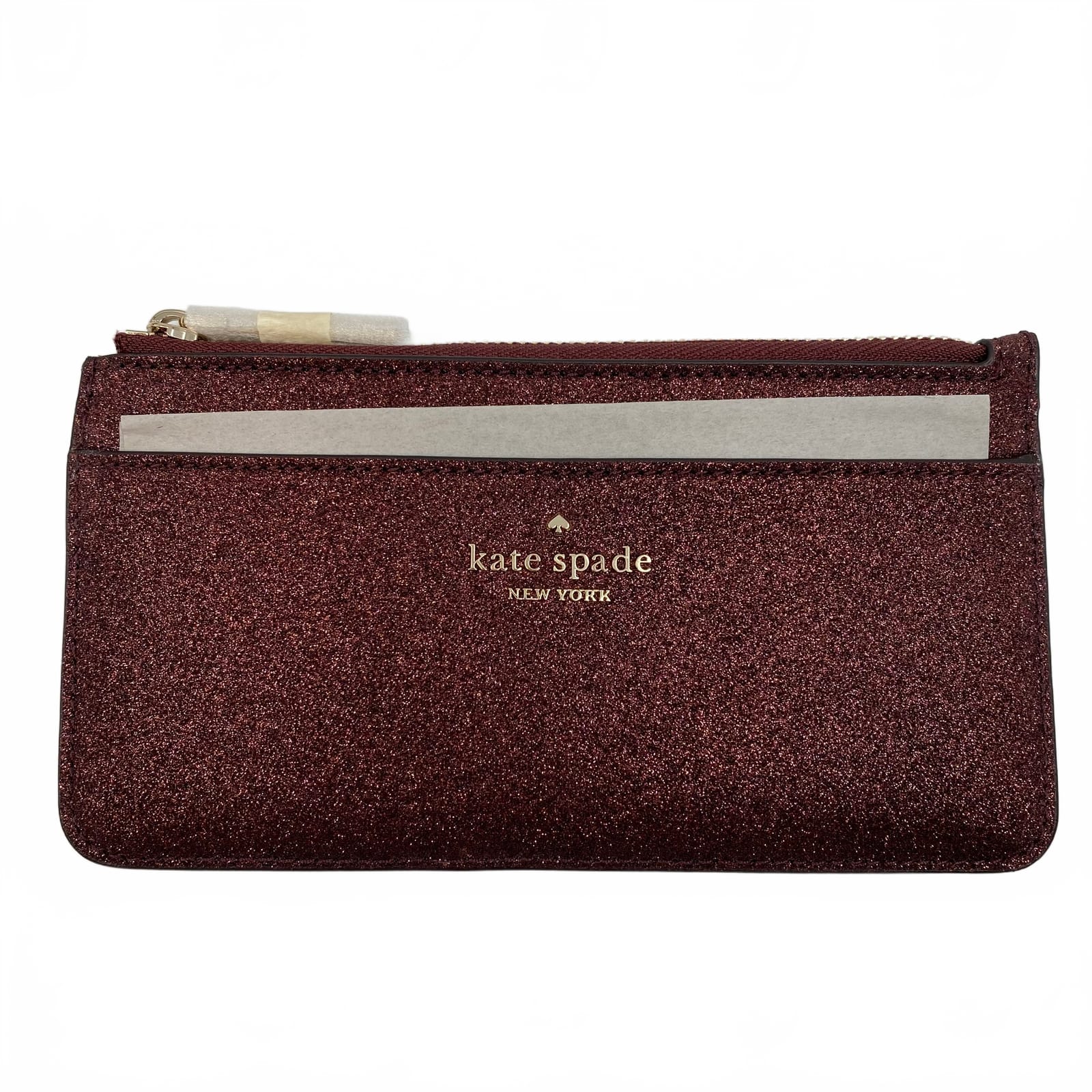This Kate Spade Burgundy Glitter Cardholder is your sleek, elegant companion for organized days. Made in the Philippines from leather, it shines with a subtle glitter finish and keeps essentials secure in a compact, boxed design. Perfect for evenings out or quick trips, it nests neatly in larger bags while offering easy access to cards and IDs. A classic burgundy tone with a touch of sparkle makes it versatile for year‑round style in any setting. Features: - Leather construction for durability and a luxe feel - Glitter accents add subtle, versatile shine - Compact, boxed large cardholder for easy carry - Burgundy tone pairs with any bag or outfit - Solid pattern with Everyday usability - Approx. Measurements: Bag Height: 3 in, Bag Width: 6 in - Inventory: 1136586 This is the polished, practical finish your look needs today.