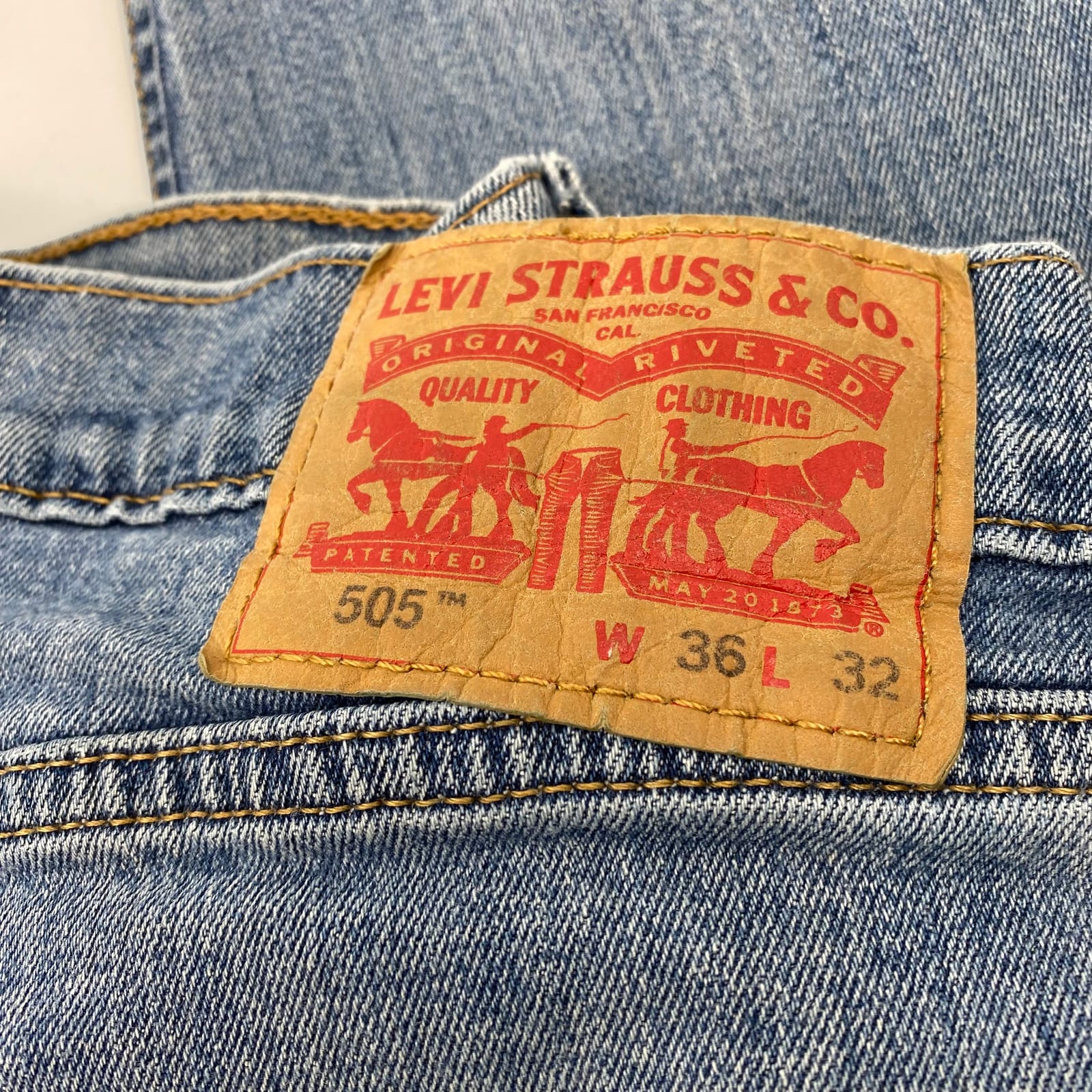 This Levi's 505 straight jeans bring a classic, versatile fit you can rely on. Made with a cotton blend for everyday comfort, they sit at the waist and offer a timeless straight leg that works with boots, sneakers, or dress shoes. Perfect for fall through summer, these in-store jeans pair with tees, jackets, and button-downs for a ready-now look. Features: - Cotton blend for comfortable, breathable wear - Regular fit with classic straight leg - Durable construction suitable for daily wear - Blue denim with versatile styling options - Made in Pakistan for consistent quality - Approx. Measurements: Inseam Measurement: 30, Waist Measurement: 36, Inseam: 30 - Inventory: 1137476 A dependable staple that lasts season after season.