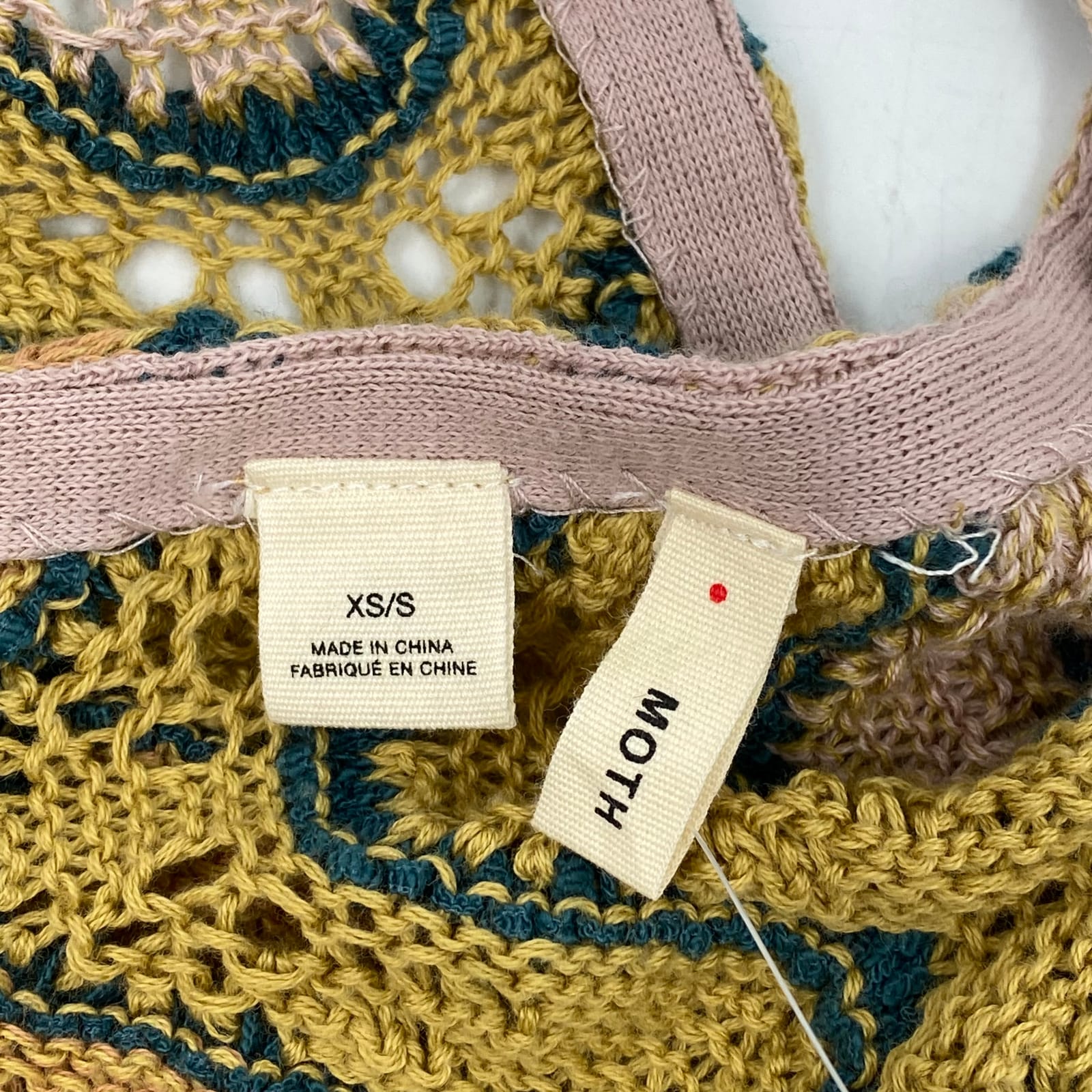 This Moth cardigan brings a playful twist to your fall layers. The open back with crisscross detail adds texture without bulk, while the soft cotton blend keeps you comfy from start to finish. In a versatile blue-brown weave, it pairs with a simple tee and jeans or dresses up over a fall knit. A lightweight layer that fits your XS regular silhouette and moves with you. Features: - Cotton-Nylon blend for soft coverage - Open back with crisscross detail for visual interest - Wave pattern adds texture to everyday outfits - Regular XS fit designed for layering - Fall-ready cardigan that pairs with jeans or dresses - Approx. Measurements: Pit To Pit: 20, Length: 17 - Inventory: 1136957 This cardigan won’t linger on shelves, so elevate your layering with a piece that feels as easy as it looks.