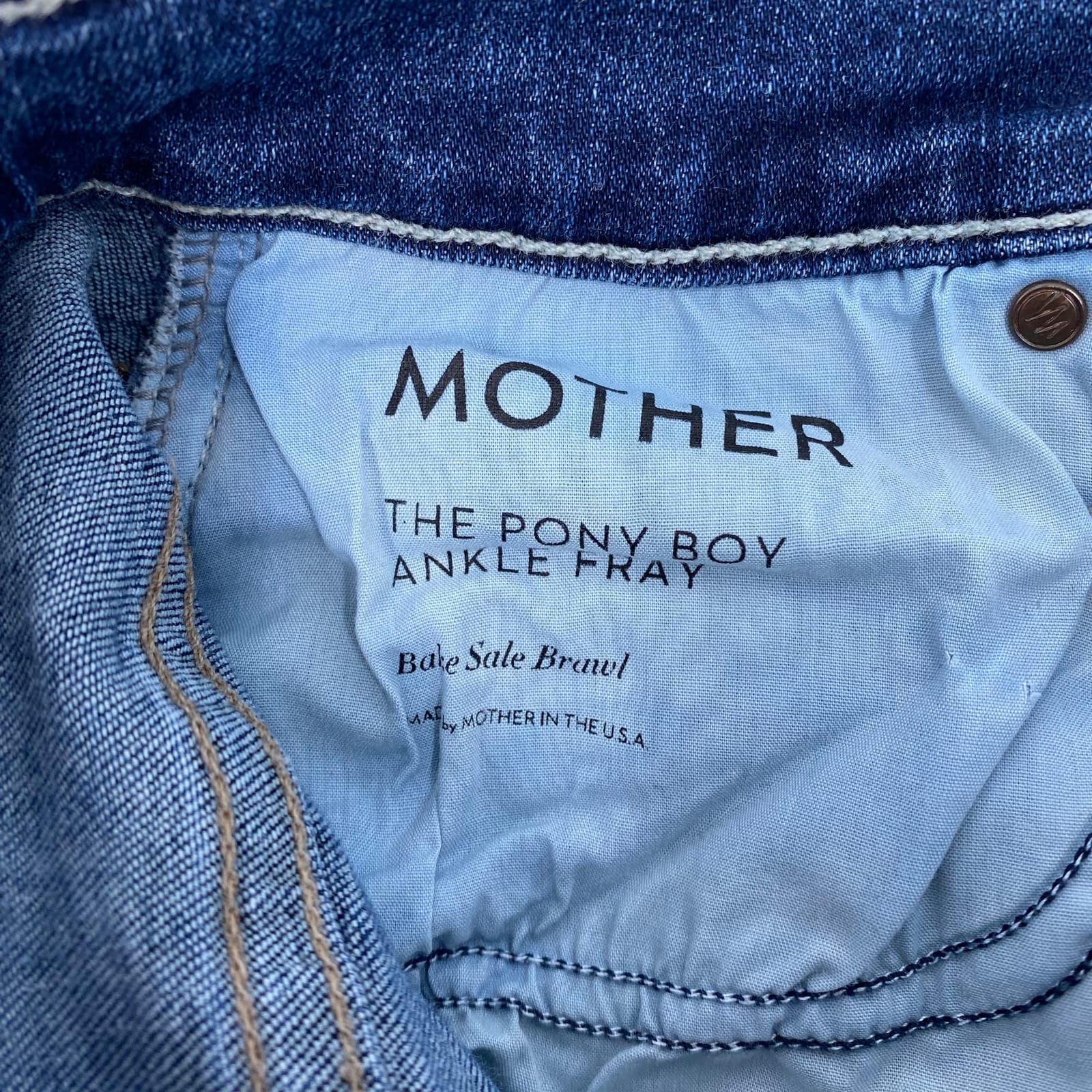 These MOTHER ankle fray jeans blend effortless style and comfort for your everyday adventures. The classic dark wash pairs beautifully with any top, making them a versatile staple in your wardrobe. With a chic frayed hem, these jeans add a touch of edge to your look while ensuring you feel fabulous from morning coffee to evening outings. Features: - Crafted from a blend of cotton and polyester - Frayed ankle hem for a modern touch - Designed for year-round wear - Classic solid pattern complements any outfit - Made in the United States - Approx. Measurements: Inseam Measurement: 25 in, Waist Measurement: 24 in, Rise Measurement: 9 in - Flaws: One cuff ripped, one cuff has come unsewn, and wear near middle seam, all as pictured. - Inventory: 1133120 Only one pair available—make them yours before they’re gone.