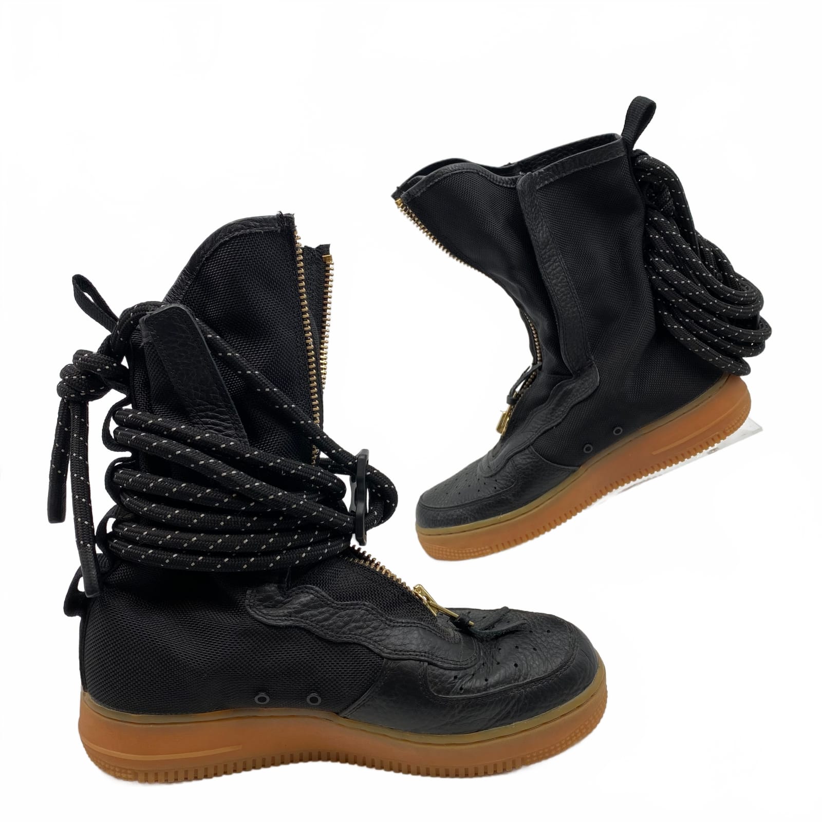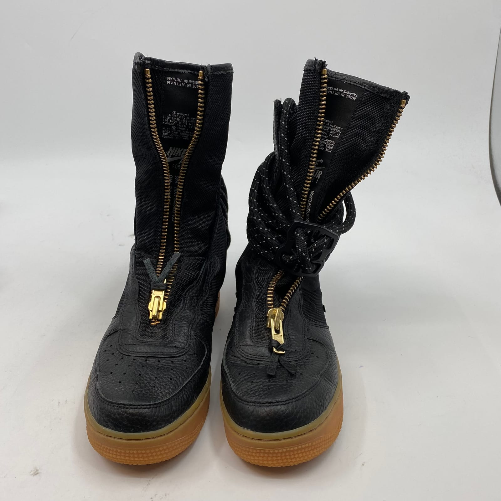 This Nike AF1 leather and synthetic sneaker adds timeless style to every step. Built for comfort with a sturdy leather upper and reliable grip, it pairs effortlessly with jeans, skirts, or sneakers-ready dresses. The black exterior with a gum sole keeps the look versatile for work, weekends, or workouts across fall, spring, summer, and winter. Features: - Leather and synthetic upper for durability - Gum rubber outsole for reliable traction - Classic AF1 silhouette with versatile black color - Regular fit, size US 8.5 for Women - Made in Vietnam with quality construction - Inventory: 1137557 Limited stock—upgrade your everyday with a classic that lasts.