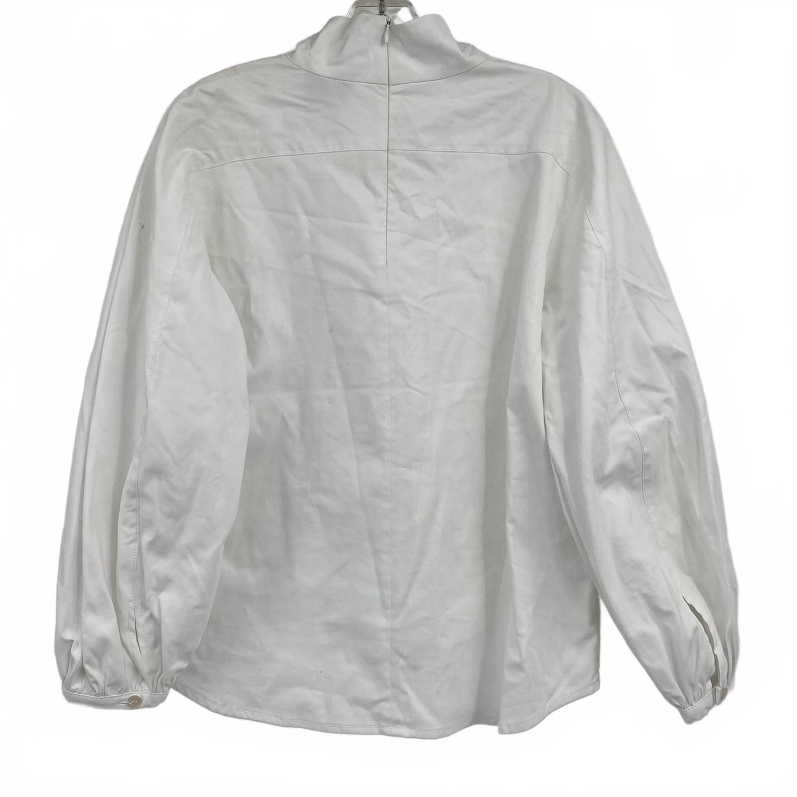 Elevate your style with this Rachel Comey puff sleeve mock neck top. Crafted from a soft blend of cotton and polyamide, this versatile blouse is perfect for any occasion, whether you're heading to the office or out for brunch. Its classic design and flattering silhouette make it a staple for your wardrobe, allowing you to easily pair it with skirts, jeans, or tailored trousers. Features: - Soft cotton-polyamide blend for comfort - Chic puff sleeves add a stylish touch - Mock neck design for a sophisticated look - Perfect for layering in any season - Classic solid pattern complements any outfit - Approx. Measurements: Pit To Pit: 20 in, Length: 25 in - Flaws: Staining on back of left sleeve, left shoulder, and right pit, as pictured. - Inventory: 1132513 A limited find that won’t hang around long.