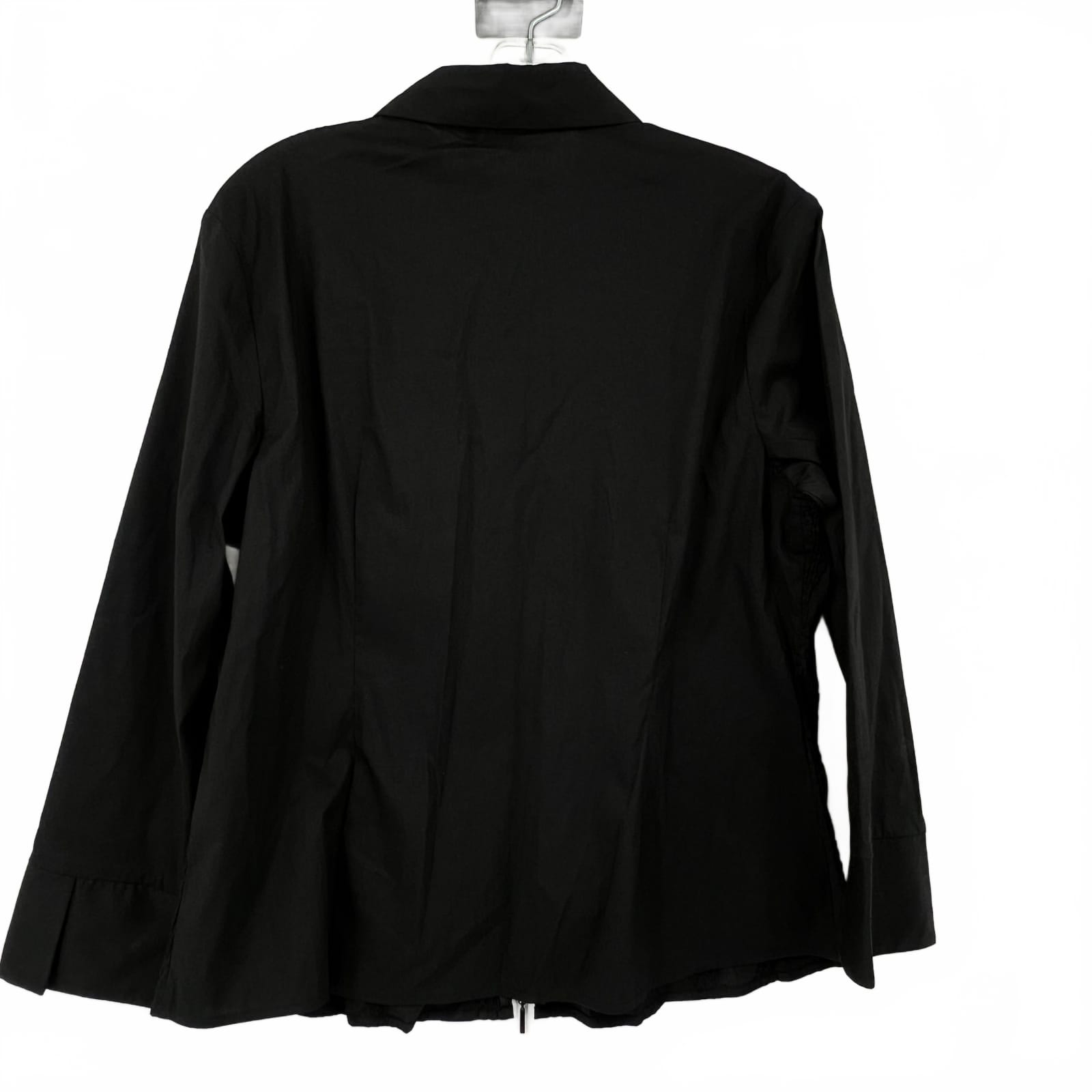 This Samuel Dong zip up shacket is your go-to piece for chilly days. The black blend of cotton, nylon, and a hint of spandex gives you a comfortable, structured fit with a touch of stretch. A full zip makes layering quick and easy, while the wave-pattern adds subtle texture to your outfits. Perfect over tees and under jackets, it transitions from casual to polished so you can stay warm without sacrificing style. Features: - Full Zip for easy layering - Cotton/Nylon/Spandex blend for comfort and stretch - Wave pattern adds subtle texture - Structured shacket design for versatile wear - Regular L size for a true-to-fit silhouette - Flaws: Ripped brand tag, as seen in photos - Inventory: 1120285 A limited find that won’t stay in stock long.