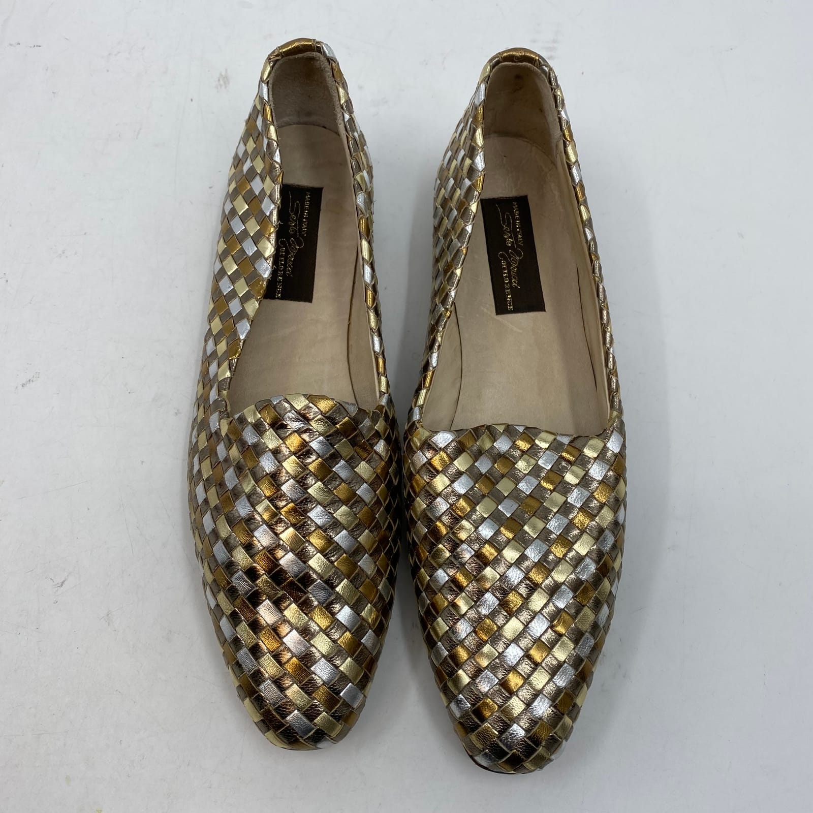Step into everyday polish with these Sesto Meucci flats. Crafted in Italy from supple gold leather with a woven texture, they add a refined shine to any outfit. Comfortable for all-day wear and versatile enough for fall, spring, or summer ensembles, they pair well with skirts, dresses, or cropped pants. A classic silhouette that elevates a simple look without sacrificing comfort. Features: - Made in Italy from genuine leather - Woven textured upper for subtle shine - Smooth, comfortable flat heel for all-day wear - Versatile gold finish complements dresses, jeans, and skirts - Regular US size 7.5 with timeless, classic style - Inventory: 1133727 This is a refined everyday essential that won’t wait long.