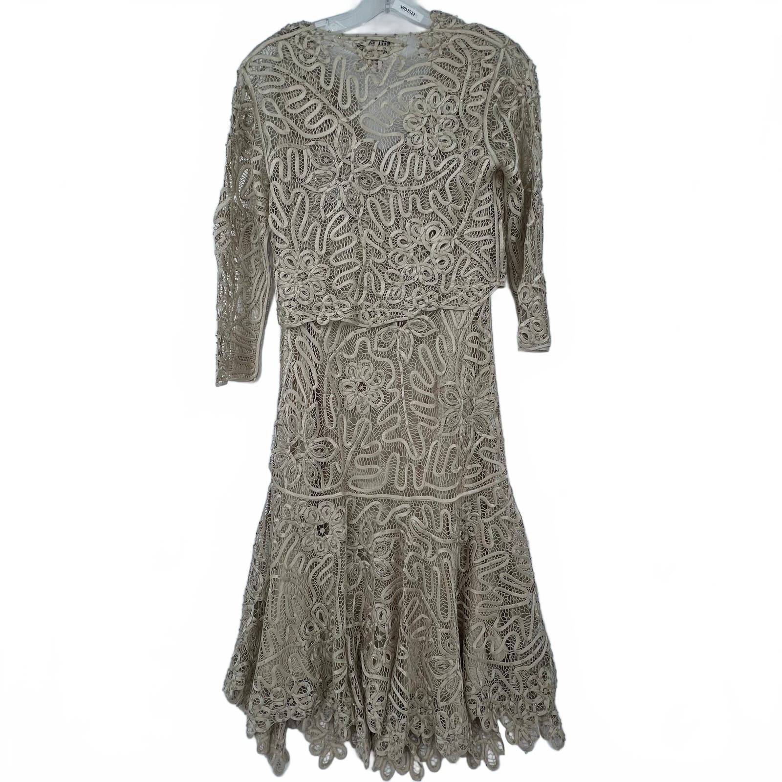 This Tan Silk Beaded Dress from Soulmates elevates your formal wardrobe with a refined blend of elegance and sparkle. Crafted in silk with floral embroidery and layered bead accents, it drapes to a flattering midi length for a polished, party-ready look. The fit & flare silhouette flatters your shape while staying comfortable for longer events. Perfect for fall and winter occasions, it pairs beautifully with simple heels and minimalist jewelry for a sophisticated statement. Features: - Silk fabric for a luxe drape - Beaded, embroidered, and sequin accents add subtle shine - Midi length with a flattering fit & flare silhouette - Floral pattern for timeless elegance - Made in China with careful craftsmanship - Inventory: 1118111 This dress sells fast—secure your formal standout before it’s gone.