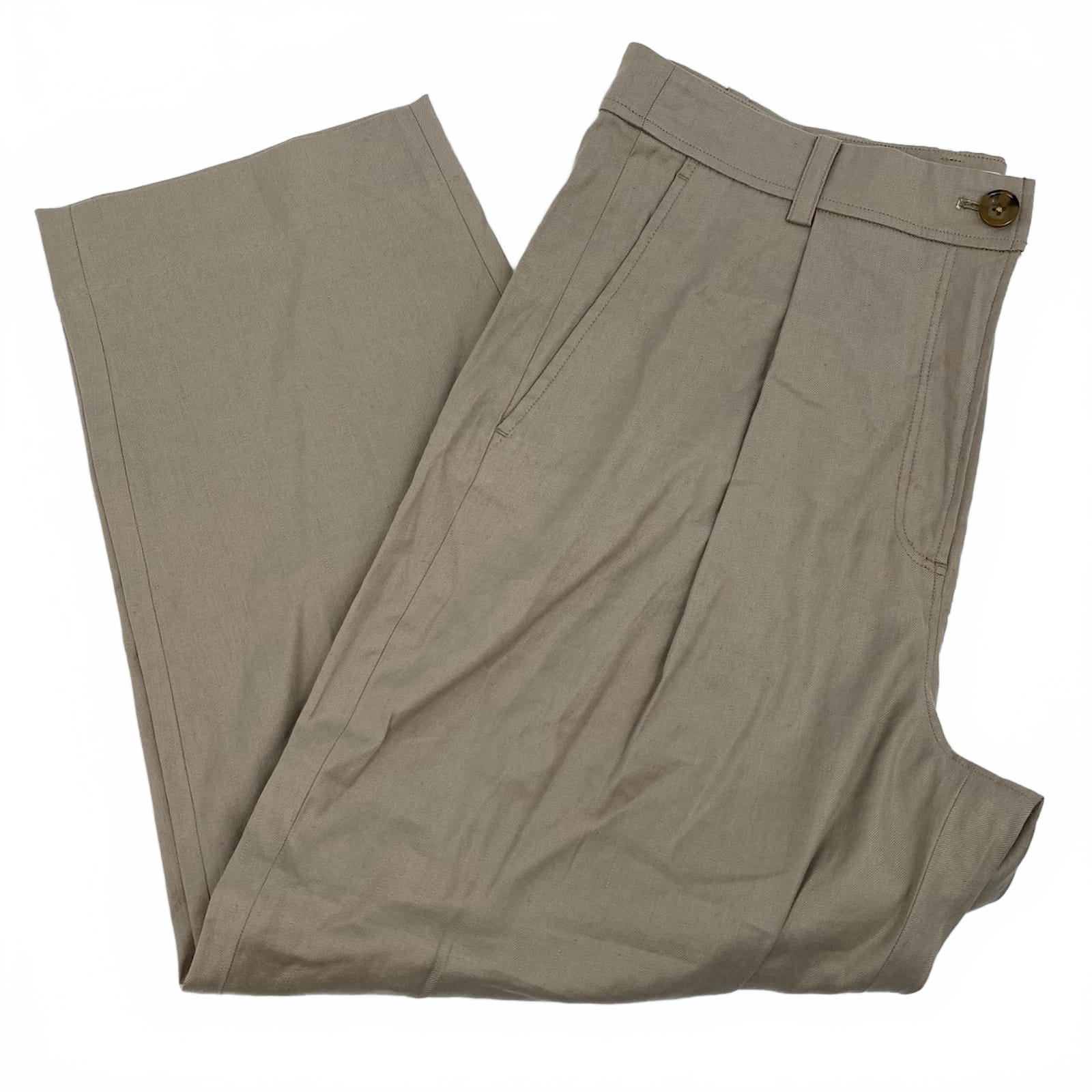 This beige slouchy cropped pant from The Reset blends linen, Tencel, cotton, and a touch of spandex for breathable comfort and a relaxed yet refined look. The cropped silhouette pairs easily with a crisp blouse or knit top, making it ideal for workdays or weekend errands. Lightweight fabrics keep you comfortable across seasons, while the neutral beige goes with everything from white tees to denim jackets. Treat yourself to easy, polished style that moves with you all day. Features: - Made from a breathable blend: linen, Tencel, cotton, and spandex - Relaxed slouchy fit with a cropped hem - Solid beige with classic, versatile appeal - Effortless pairing with tops and footwear for any occasion - Regular size, designed for easy wear and all-day comfort - Approx. Measurements: Inseam Measurement: 25 in, Waist Measurement: 34 in, Rise Measurement: 12.5 in - Inventory: 1133977 A limited find that won’t hang around long.
