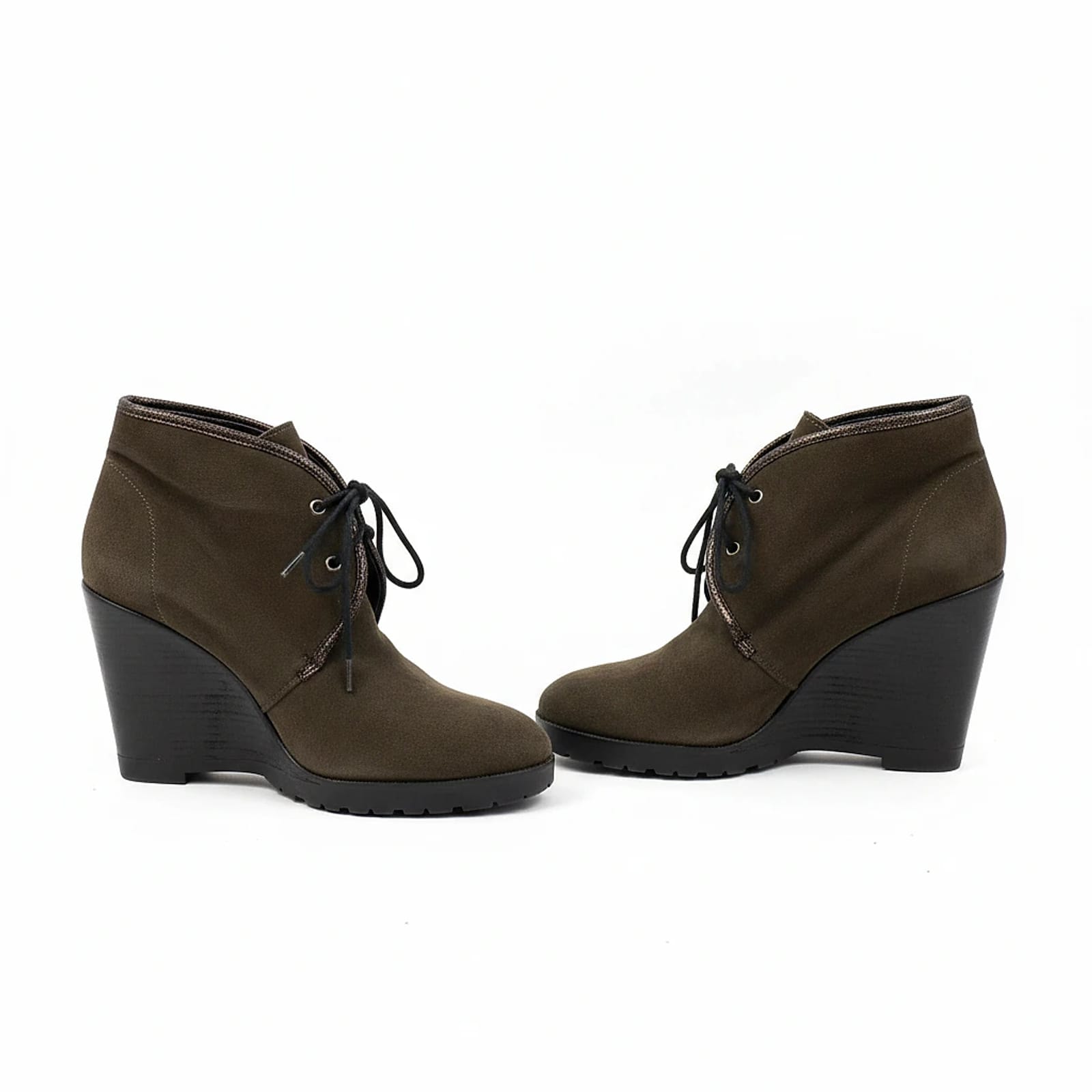 Step into versatile style with these Venessa Wu green suede ankle boots. Soft, durable suede meets a classic bootie silhouette for all-season wear—from chilly mornings to breezy evenings. The smooth upper and timeless shape pair easily with dresses, jeans, or casual skirts, giving you a polished look with minimal effort. Features: - Suede upper for a premium, soft feel - Classic bootie silhouette for everyday wear - All-season versatility from winter to fall - Regular EU size 40; US 9.5 equivalent for confident fit - In-store availability; good condition with durable construction - Inventory: 1141876 Your next go-to boot is here before it’s gone.